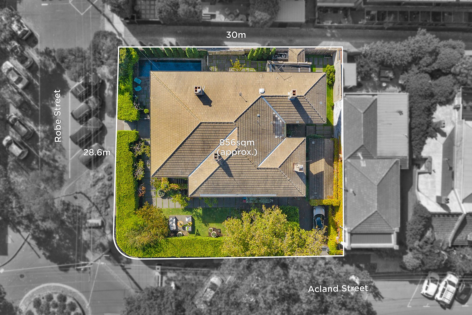 In terms of sheer scale, beauty, style and flexibility, this illustrious period residence is in a class of its own. Majestically surrounded by 856sqm approx. of glorious landscaped gardens with 3 street frontages, its captivating blend of c1880 Victorian and c1910 Arts and Crafts elegance and 21st century designer style creates a breathtaking domain only moments from the beach, buzzing Acland and Fitzroy St restaurants, shops and trams.