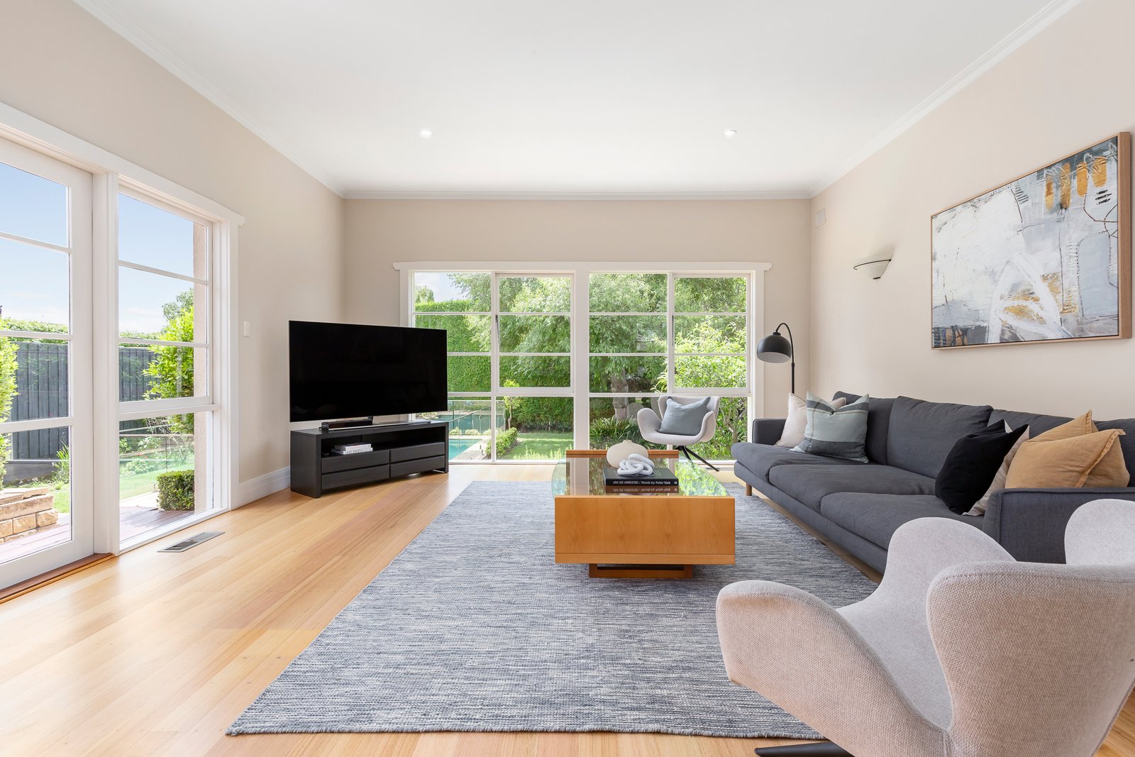 Visionary design meets Art Deco refinement in this outstanding family home, where a quality renovation introduces timeless luxury. The location in wide and leafy William Street simply enhances this idyllic hideaway, blocks away from Firbank and Brighton Grammar Schools, and all the shopping and cafes that make Church Street and Bay Street world-class. Step inside and see two levels of excellence, with a large light-filled family room looking out to the garden, pool and magnificent Leighton Green privacy hedging, classic lounge and dining rooms that retain original elegant fireplaces, four bedrooms and a study, and a high-end V-Zug kitchen and butler’s pantry. Families will appreciate the excellent zoning, including a study with glorious garden views and outdoor access, a ground-floor main bedroom with a dressing room and stylish renovated ensuite, and the flexibility that comes from zoned living spaces. Just as much care has gone into transforming the garden, with evergreen landscaping surrounding the pool, a barbecue deck for al fresco dining, and established trees creating beautiful outlooks from all main rooms. Quality is at the heart of this fine home, with Swiss-made combi-steam and convection ovens and induction cooktop, marble benchtops, ducted climate control and working fireplaces, new loop-pile carpet, wine storage, and intercom entry. Everyday practicality is easy with remote-control driveway gates, a double garage, drying cupboard, built-in barbecue, and garden storage. Look out from upstairs and see Brighton Town Hall’s clocktower and William Street’s flowering gumtrees, and appreciate the convenient location of this cared-for oasis on 800 square metres of land (approx.).