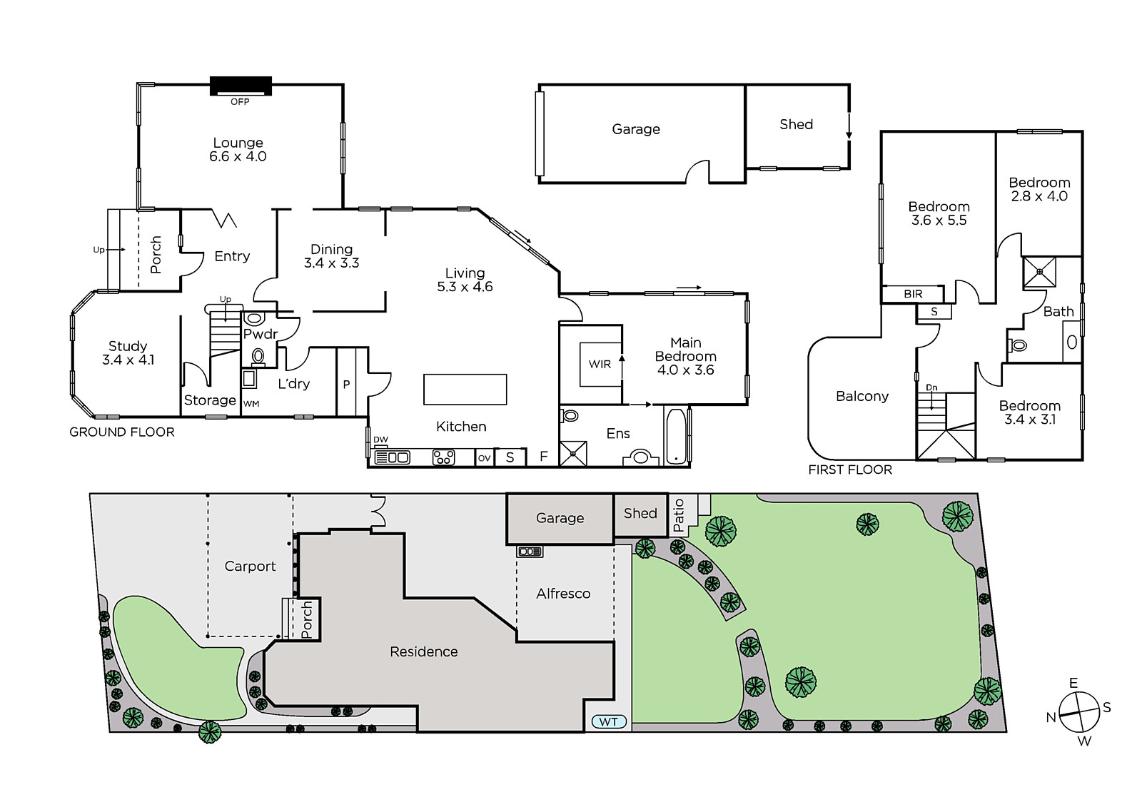 High ceilings, timber floors and original metal-framed windows are featured in the wide entrance hall, captivating home office with its curved wall of windows and the gracious sitting room with an open fire. An inviting dining room and the generous family room served by a superb granite kitchen open to a large paved and covered al fresco BBQ terrace and the deep private garden beyond. A light-filled main bedroom, en suite with spa bath and walk in robe are conveniently positioned downstairs, while upstairs there is a spacious bedroom, two additional bedrooms, second tiled bathroom and a north-facing balcony.