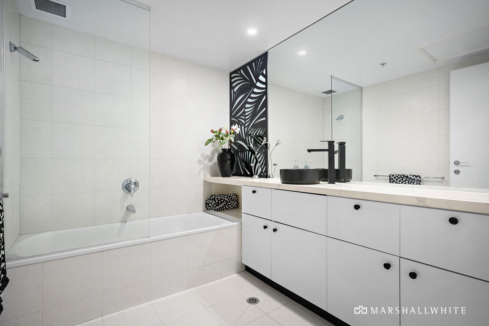 Capturing front-row scenes of the city lights and sunset views over Port Phillip Bay, a superbly shaped plan gives an impressive and relaxing sense of space, with an inviting hallway reaching generously-sized bedrooms, including the main with a walk-in robe and a modernised bathroom. A sizeable study/third bedroom is an ideal addition for those seeking lifestyle flexibility, whilst a powder room accompanies the main bathroom, updated with a new stone vanity and basin.