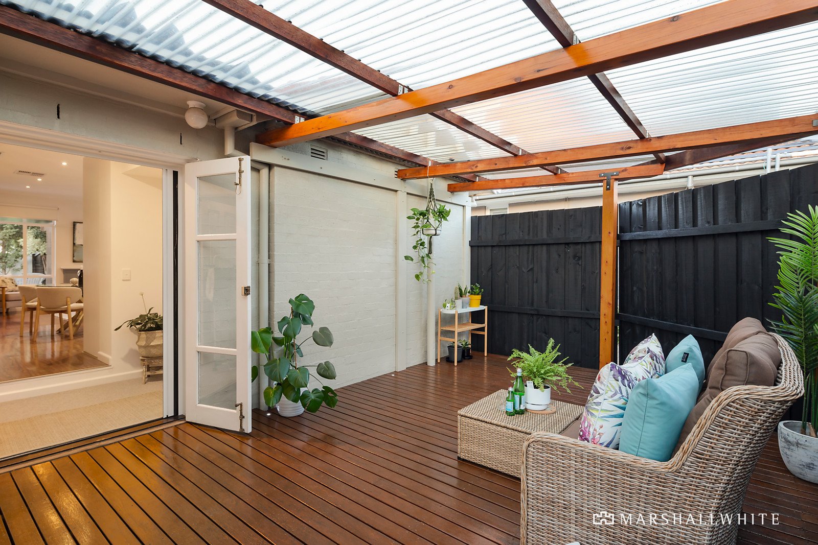 This beautiful single-level three-bedroom home offers an impressive north facing garden and convenient living set well back from the street, just moments from Hampton Street, metres from sports grounds and close to many of Bayside's best schools. It's updated for contemporary living with a north-facing lounge and dining zone, quality kitchen appliances, a two-way bathroom with access from the main bedroom and expansive windows which create light filled bedrooms and living areas. Enjoy the warmth of the open fire place in the central lounge area during winter. There's new ducted heating, cooling and carpets, and scope to build up or out if you decide you ever need more space (STCA). This has lifestyle elements you'll appreciate, including a spacious front yard with a remote-control double-driveway gate, intercom entry and security alarm for added privacy. The undercover deck is perfect for alfresco dining, relaxing or kids' play space. Privacy fencing, front and rear decking, and an established garden with remote watering system there's nothing more to do but move in and enjoy your new home. Located conveniently between Castlefield and Sillitoe Reserves with an easy stroll to Hampton Primary School, Haileybury, St Leonard's College and Hampton Street.