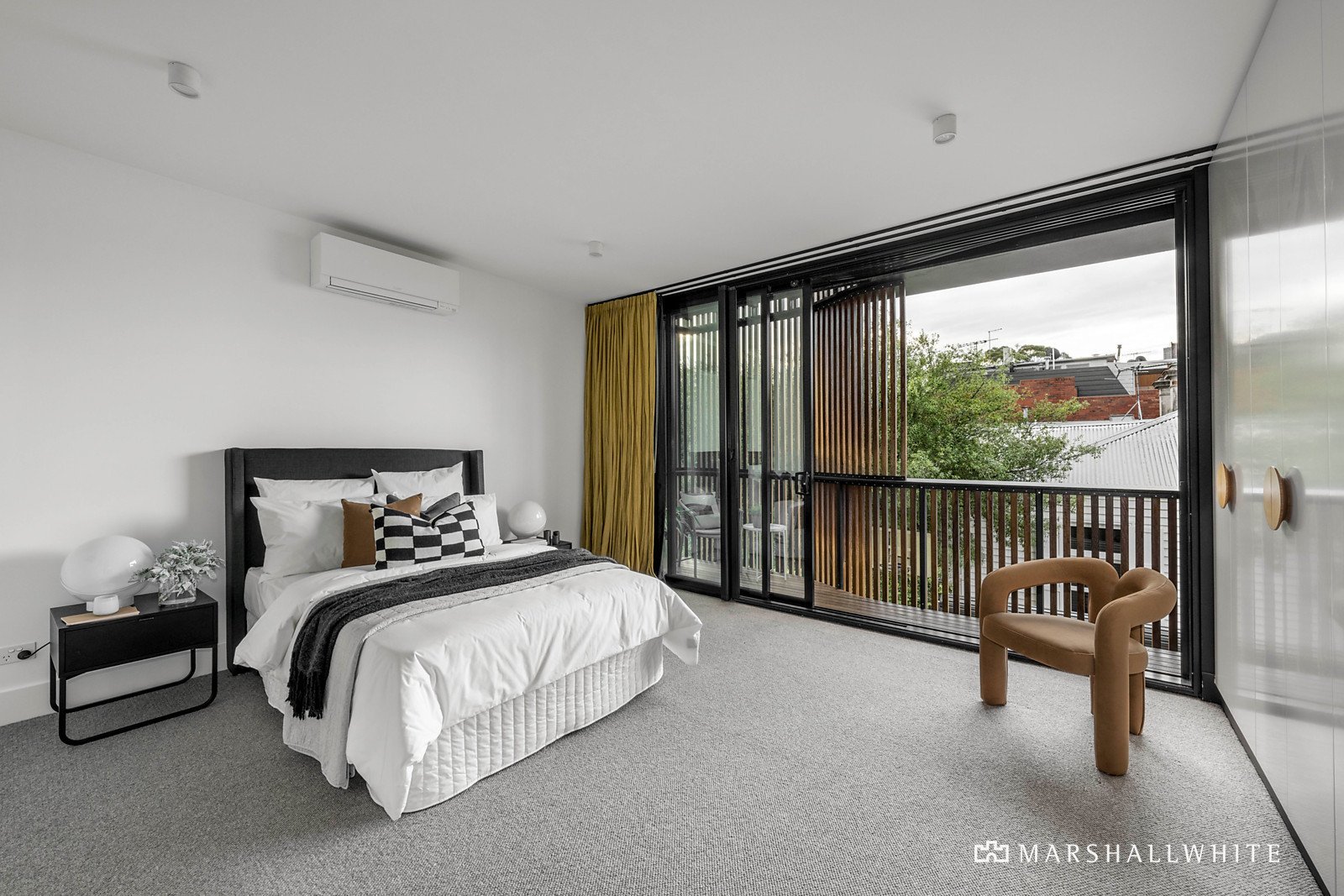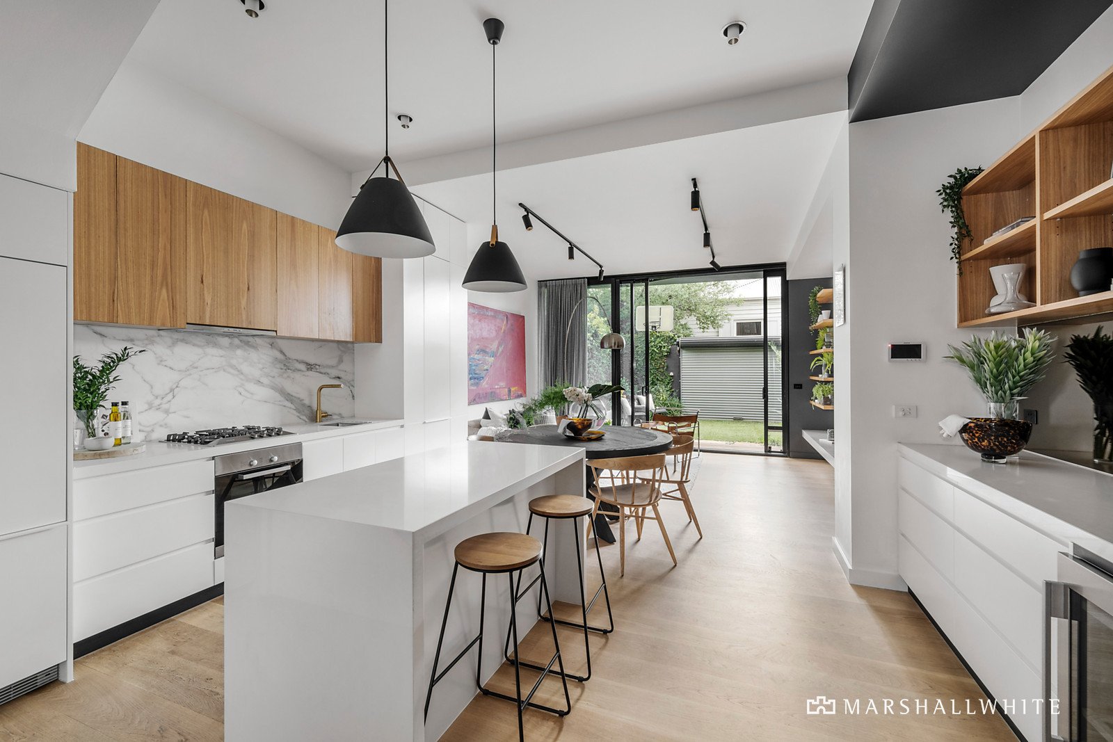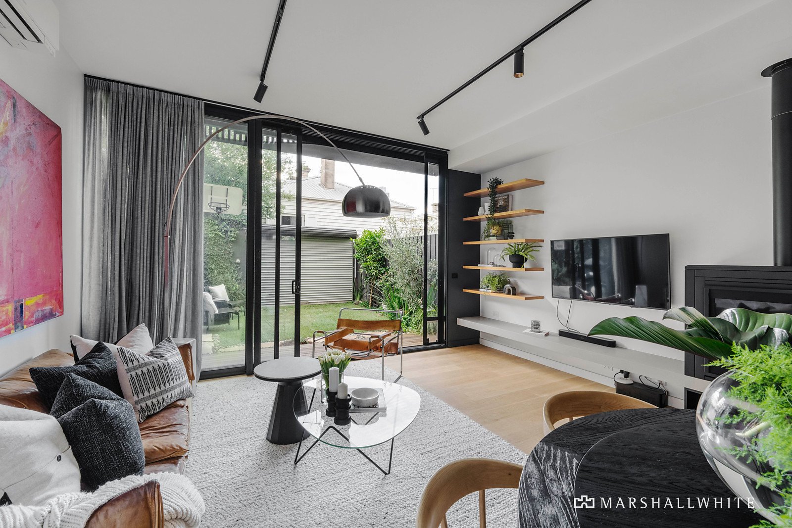 Incredible interiors emphasise northern light and natural durability, incorporating natural timber, floor-to-ceiling double glazing, and access to the outdoors on every level. The intelligent design utilises every inch of space, allowing the free-flowing nature of the home to shine without compromising on storage and function desired by the modern family. Soaring 3.1-3.5m ceilings connect the home's origins with spectacular contemporary space, revealing a welcoming entrance hall, formal sitting room with 4th bedroom flexibility. Beyond the stairwell, enter into the striking entertainer's domain, headlined by a premium Miele kitchen with an integrated wine fridge, large island bench and integrated fridge/freezer. Warm up by the large gas fireplace in the main living space , or spill outdoors via stacked sliding doors to the private garden courtyard setting, promoting relaxation and play, with the bonus of off-street parking via a private rear laneway.
