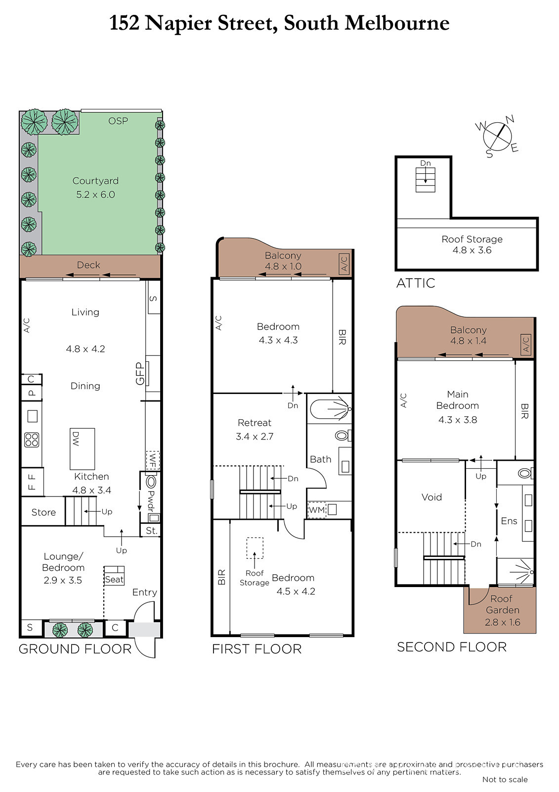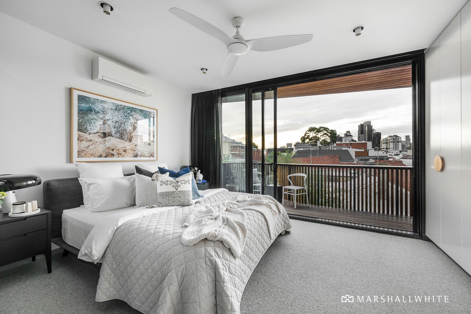 Timber screening connects each level with the architectural exterior, allowing light to filter throughout the upper living space and all three levels, starting on the top floor with a spectacular main bedroom retreat boasting a private dual-vanity ensuite, elevated south terrace, study nook and northern balcony overseeing the city lights. Floor-to-ceiling tiles feature throughout the designer bathrooms, including the family bathroom/laundry, whilst wall-to-wall robes offer absolute convenience in all three existing bedrooms. Located within one of South Melbourne's most beautiful Jacaranda-lined streets, steps from Clarendon Street, parks and a short stroll to the South Melbourne Market, Albert Park Lake and excellent schools, it features split system heating/AC, fully-lined attic storage with ladder, video intercom, American Oak and 100% wool flooring, retractable fly-screens, custom floor-to-ceiling storage solutions and a powder room.