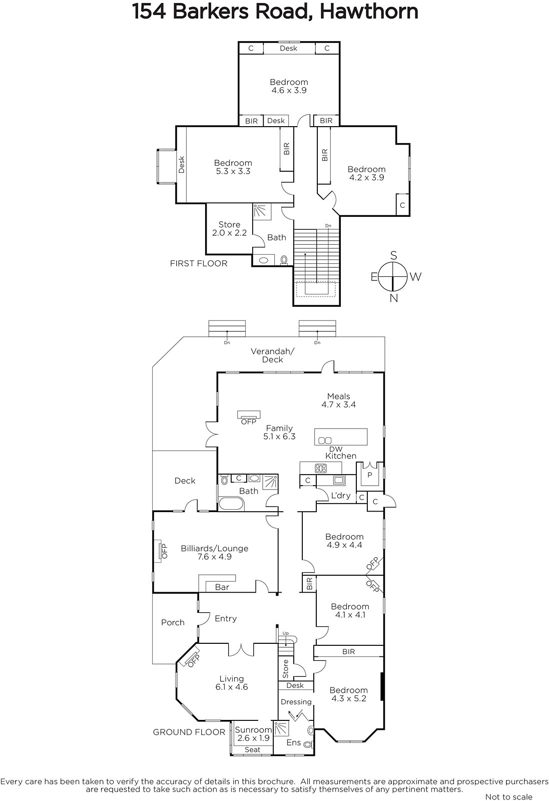An imposing reception hall distinguished by elaborate fretwork, high ceilings and leadlight windows introduces a glorious sitting room with decorative mantelpiece and sunny alcove and a grand billiards room with fitted bar, billiard table and open fireplace. Timber floors flow through the expansive living and dining room warmed by an open fireplace and featuring a gourmet kitchen boasting stone benches, an Ilve oven and walk in pantry. The living spaces extend out to a large surrounding deck and the private garden with heated pool. An abundance of family accommodation comprises on the ground level the beautiful main bedroom with built in robe, dressing room and en-suite, two double bedrooms and a bathroom while upstairs there are three additional bedrooms with built in robes and third bathroom.
