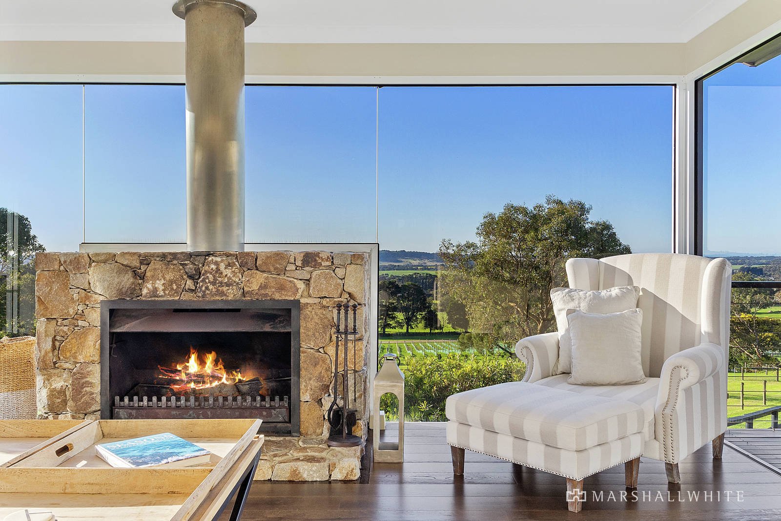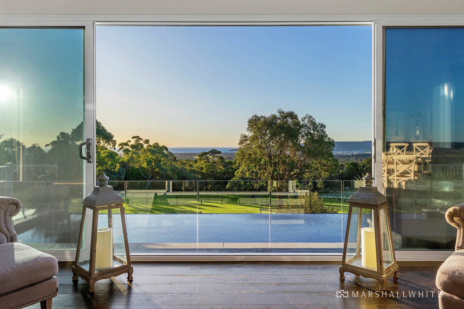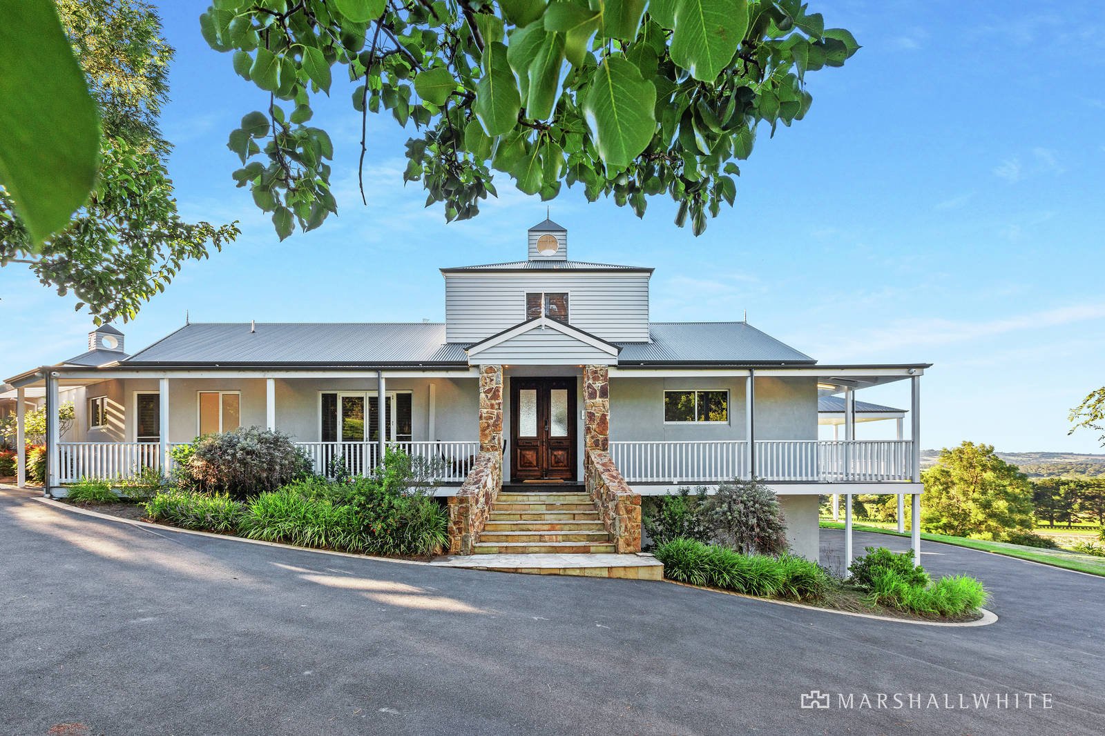 Breathtaking panoramas stretching over Port Phillip Bay and the contours of Red Hill countryside, this luxury estate commands admiration across five cultivated acres (approx.), embodying a sophisticated allure transcending all expectations.
