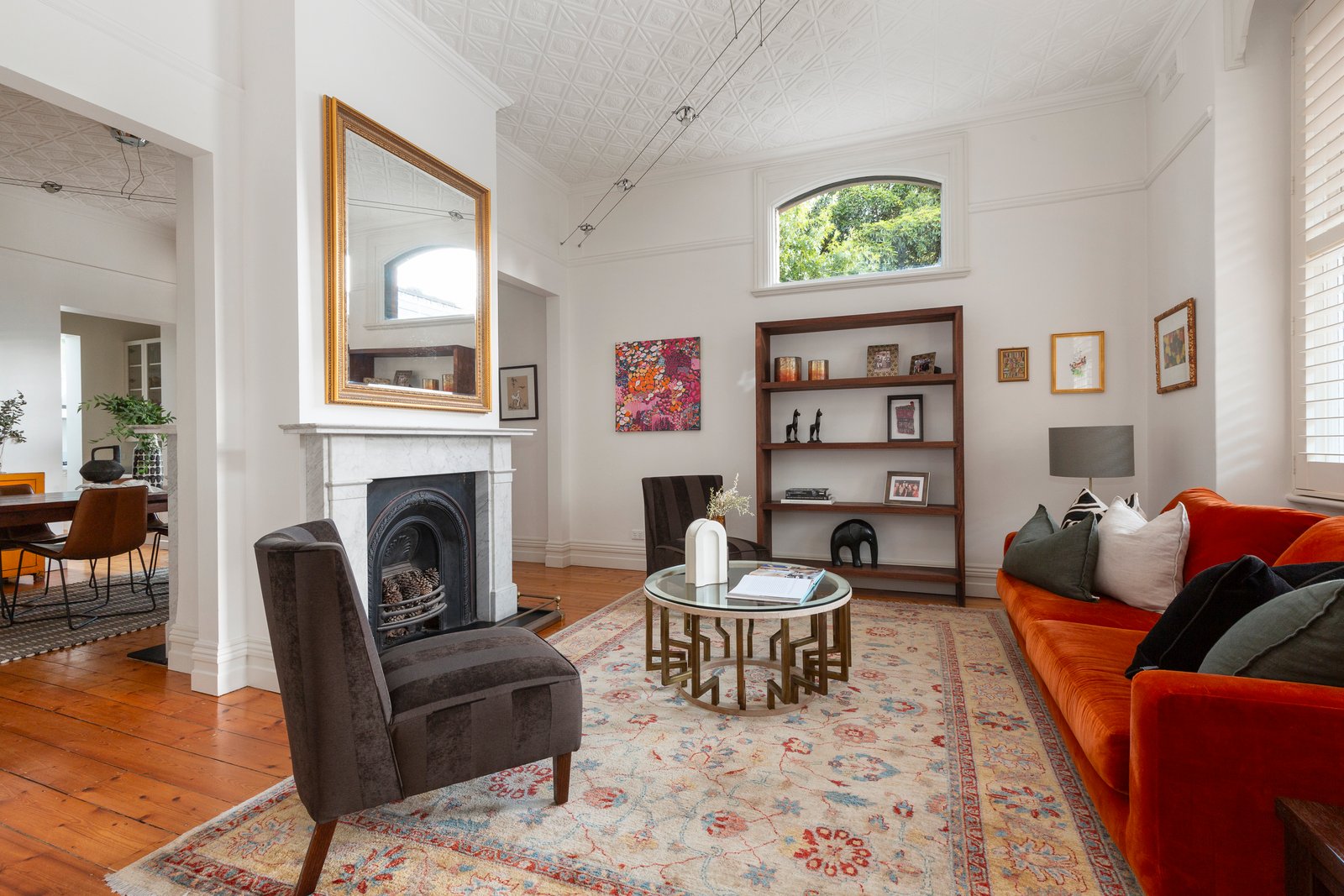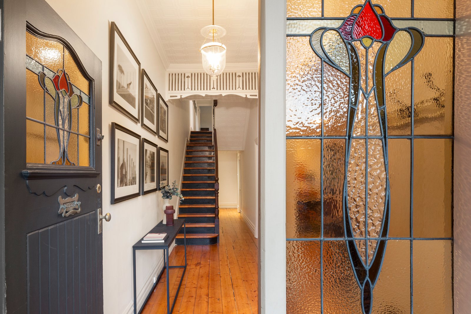 Framed by a glorious Canary Island palm tree, the entrance hall immediately impresses with its Baltic pine floors, leadlight windows and ornate pressed metal ceilings. The evocative original features continue through the generous sitting and beautiful dining rooms, both with marble fireplaces. Beneath a vaulted glass ceiling, the conservatory kitchen is a gourmet heaven with Carrara marble benches, Ilve oven and Miele dishwasher. The expansive adjacent living room opens to a private northeast paved courtyard offering secure parking for 2 cars via the rear lane. Upstairs, the gorgeous main bedroom with fireplace, robes and stylish en suite/bathroom overlooks the park. There is also a second bedroom, designer bathroom and spacious third bedroom with marble fireplace, built in robes and full width west-facing undercover balcony.