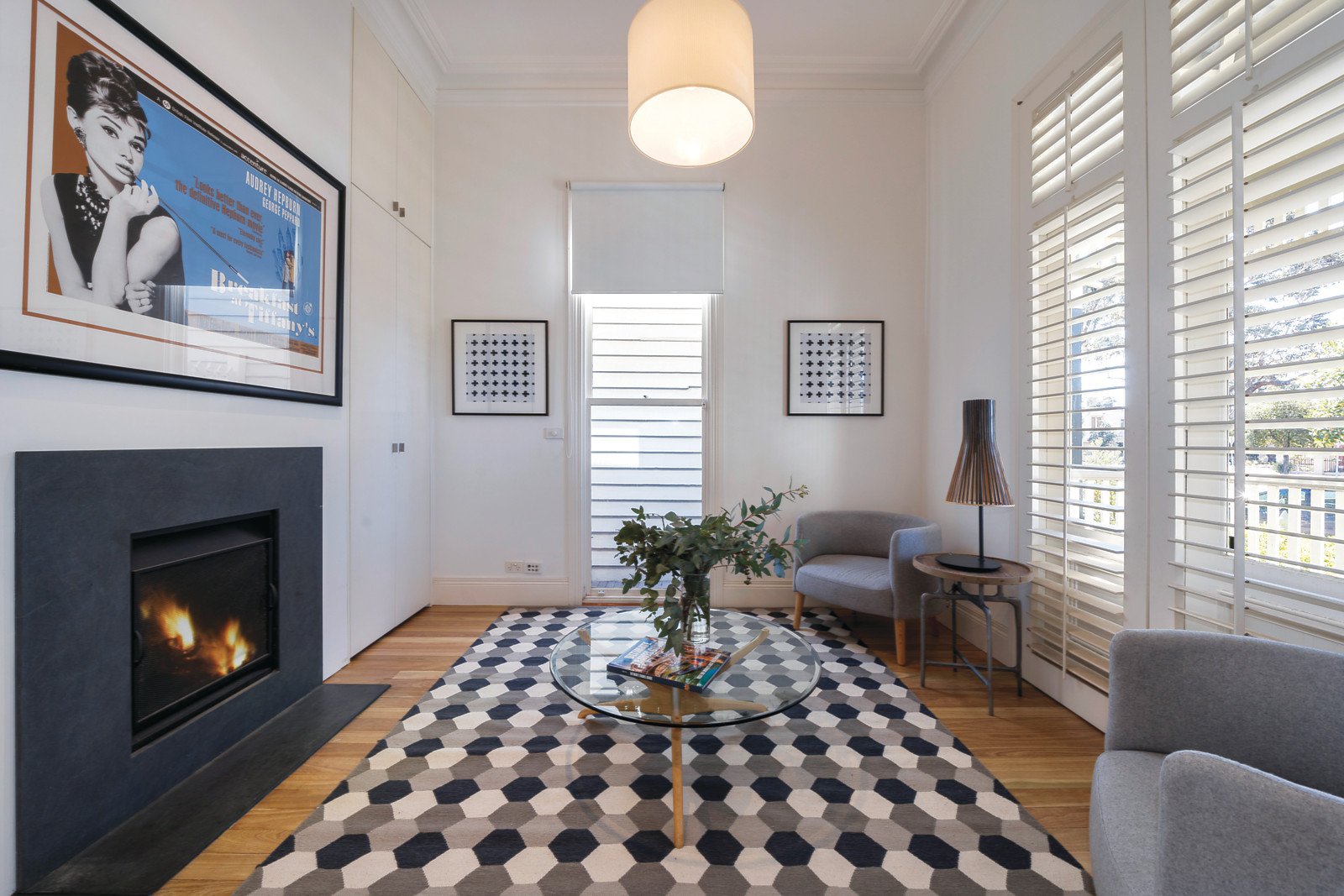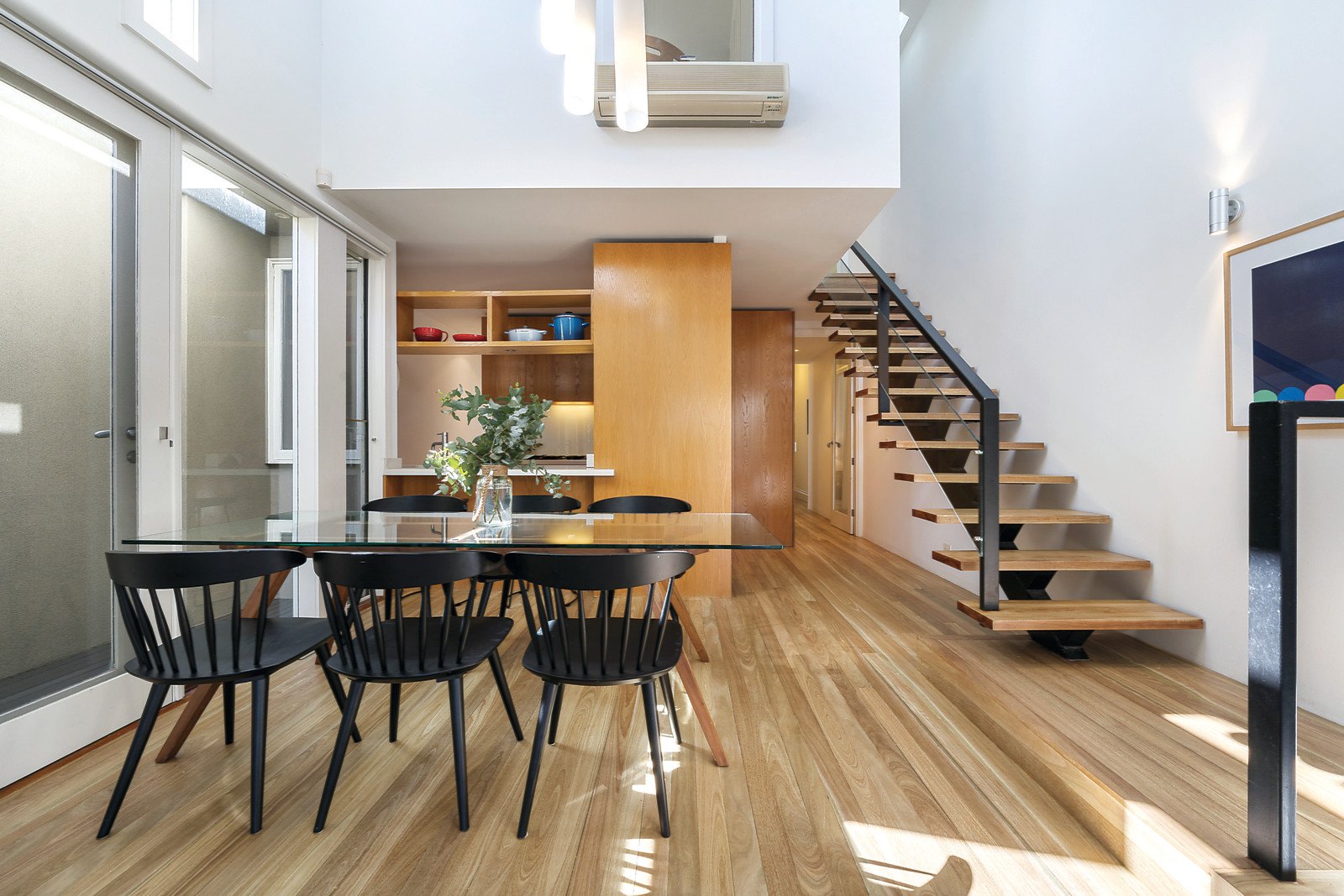 Timber floors flow through the arched hallway to an elegant sitting room or 3rd bedroom, a gourmet kitchen appointed with stone benches, Smeg appliances and integrated fridge/freezer and a stunning dining area beneath a soaring void. The generous living space with gas fire opens out to a private courtyard with access to rear lane. A beautiful downstairs bedroom with built in robe and a stylish bathroom are complemented upstairs by a gorgeous main bedroom with built in robe, chic en-suite and north-facing balcony offering city views.