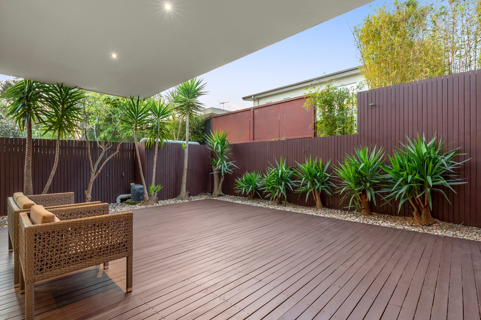 Drenched in northerly sun, a broad, semi-undercover deck integrates fully with the main living area when the floor-to-ceiling sliding stacker doors are open, while the gourmet kitchen is defined by a custom marble island bench/breakfast bar and equipped with Smeg appliances including a five-burner gas cooktop, 900 mm oven, and an integrated dishwasher. A walk-in preparation pantry adds further amenity when entertaining, while a powder room with marble vanity, and laundry/mud room with plenty of storage cupboards, and external access enhances flow and functionality. Upstairs the main bedroom suite has automated awnings, a walk-in robe and wet room ensuite with free-standing bath and double shower, while the other three bedrooms, all with built-in robes, are serviced by the main bathroom, also with a bathtub and walk-in shower.