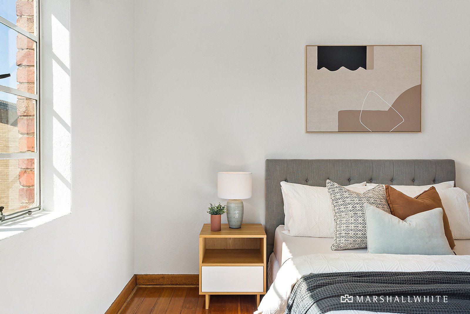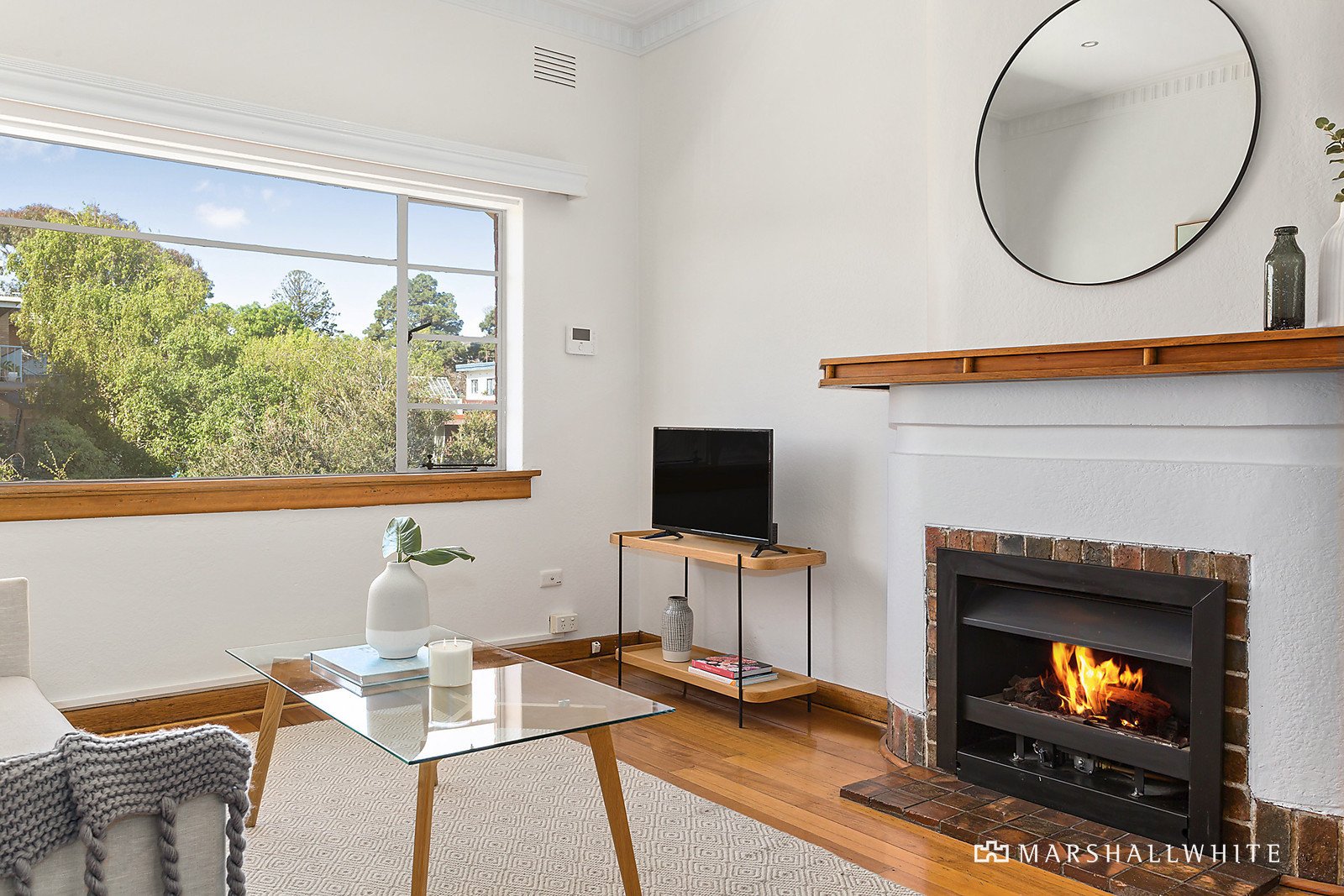 With decorative ceilings, floorboards, and fresh paint, this apartment is a rejuvenated haven.