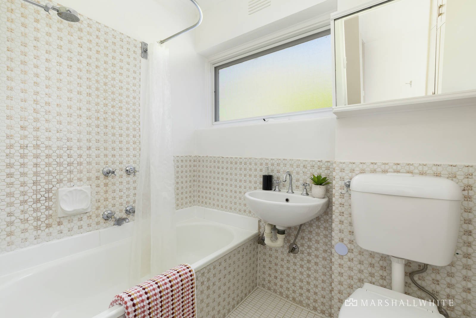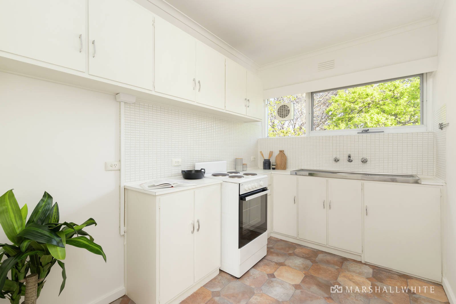 Freshly painted and with new carpets, this 1960's apartment is bathed in natural light thanks to its prized north-west corner position. The kitchen seamlessly connects to a spacious lounge and dining area, leading to a sunny balcony overlooking a beautiful, landscaped communal courtyard. The bedroom boasts generously sized built-in robes, and the bathroom/laundry is spacious and well-appointed. Electric heating ensures comfort, and undercover parking adds wonderful convenience.