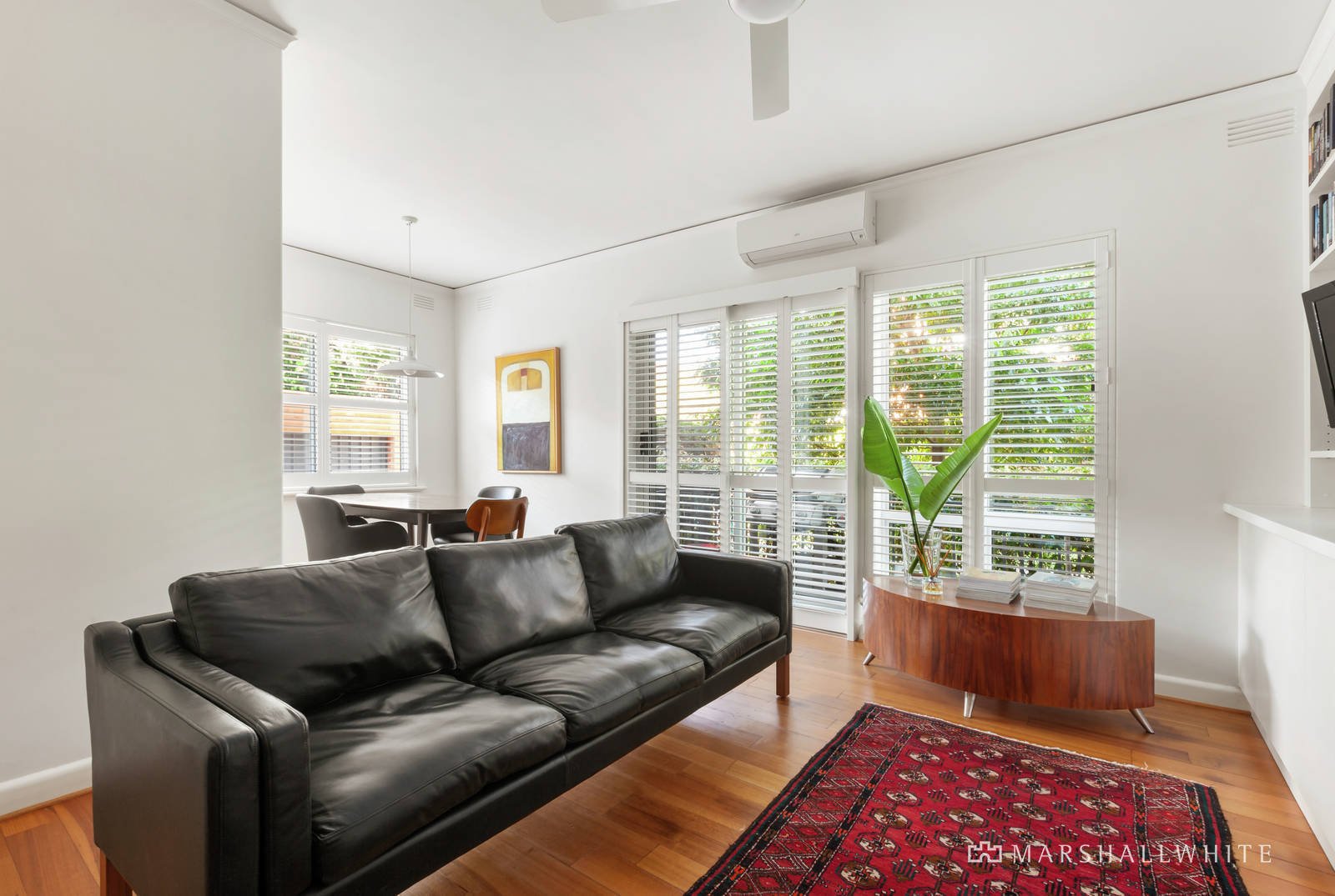 Recently renovated with an eye for pristine designer style, this over-sized single bedroom apartment enjoys a whisper-quiet, garden-surrounded setting at the very rear of this block in one of South Yarra's most desirable cul de sacs. Immaculately presented and easily maintained, the home offers a highly-treasured parking space, making it perfect for lovers of South Yarra sophistication and those who keep a firm eye of the performance of their portfolios. Framing the most delightfully leafy outlooks and with polished hardwood under foot, a white and bright, subway-tiled kitchen is separate to dining, while a semi-attached lounge is warmed by a gas log fireplace and the plushly-carpeted bedroom has been equipped with built-in robes. The bathroom is similarly stylish and timeless, plus there are plantation shutters, split system heating and air conditioning, and outdoor living that, in reality, is almost exclusively your domain. Simply wander down the street to immerse yourself in Toorak Rd's famous scene of cafes, restaurants, bars and nightlife, while all your shopping needs can be met on Chapel St and at the Como Centre, plus you have city-bound trams, trains from South Yarra Railway station and Yarra trails at the other end of the street.