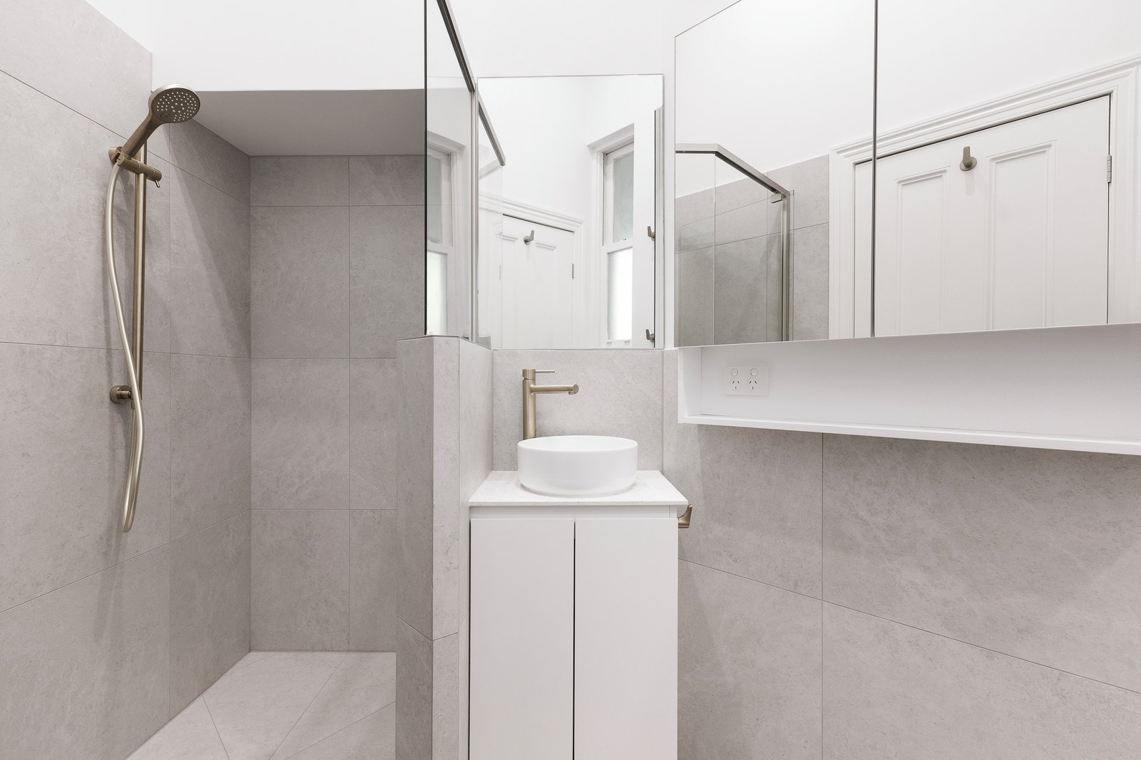 The newly renovated bathroom is beautifully appointed with a clean, modern aesthetic, while the separate laundry adds further practicality.