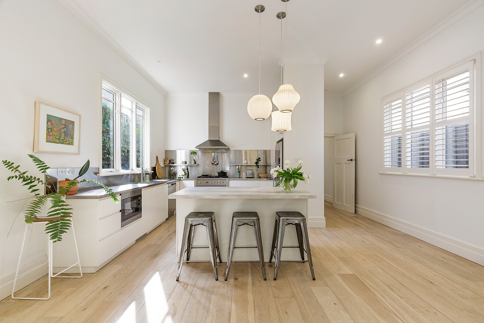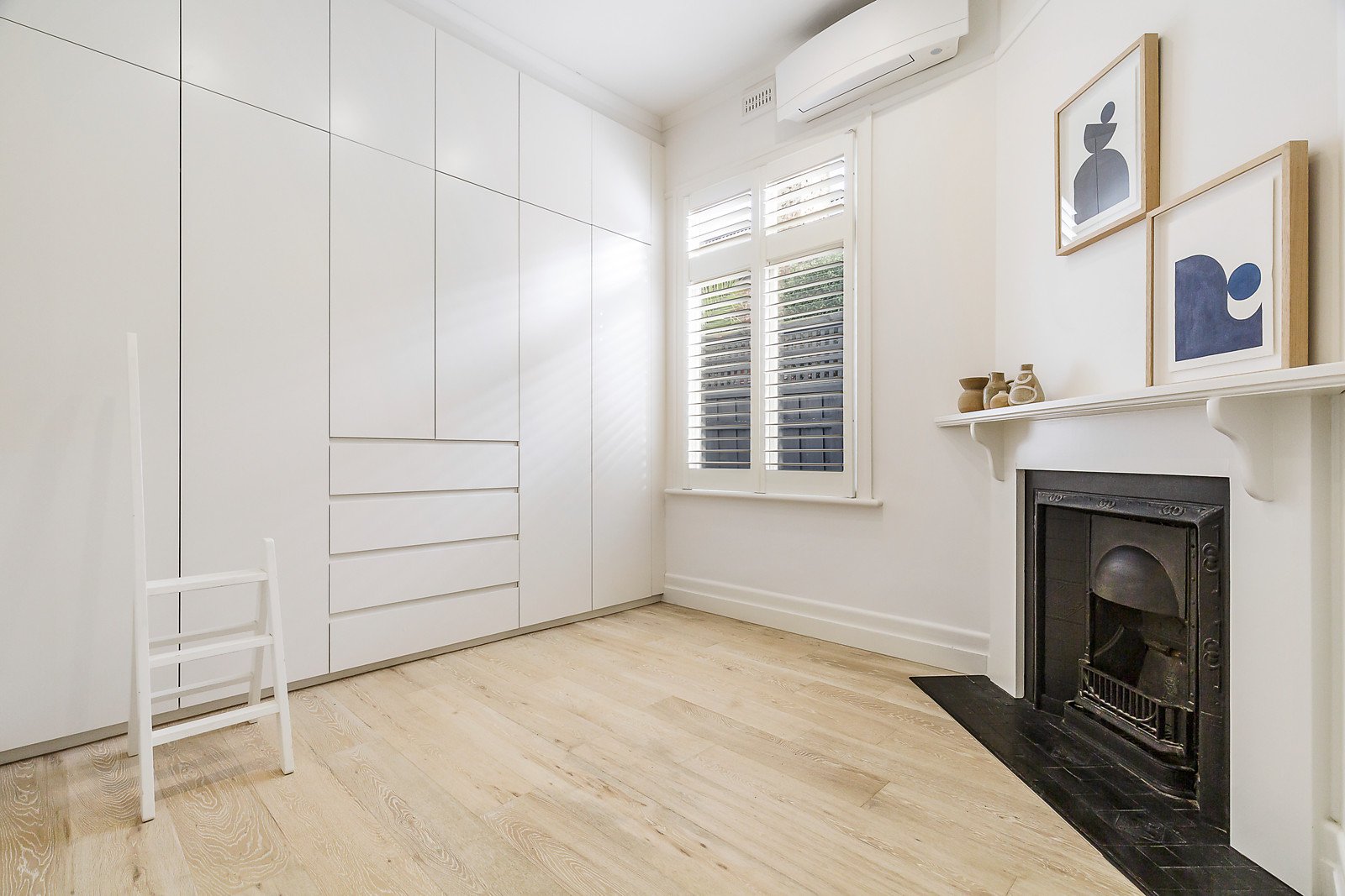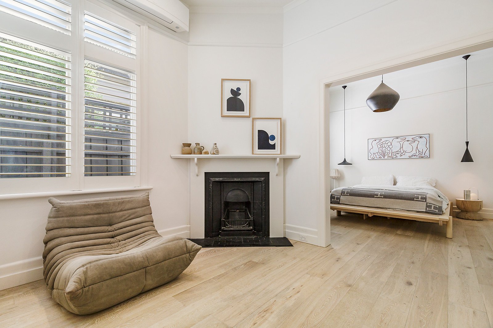 Limed oak floors, custom shutters and bespoke joinery highlight the designer flair through every light-filled dimension. A broad entrance hall leads to a gorgeous sitting room or second bedroom, the lavish main bedroom generous dressing room/retreat/3rd bedroom, and an ultra stylish bathroom with Elba marble and freestanding bath. High ceilings accentuate the sense of space in the expansive open plan living and dining room complete with a gourmet kitchen boasting stainless steel benches and an Elba marble island. Black steel framed doors reveal a large private paved courtyard ideal for al fresco dining surrounded by greenery.