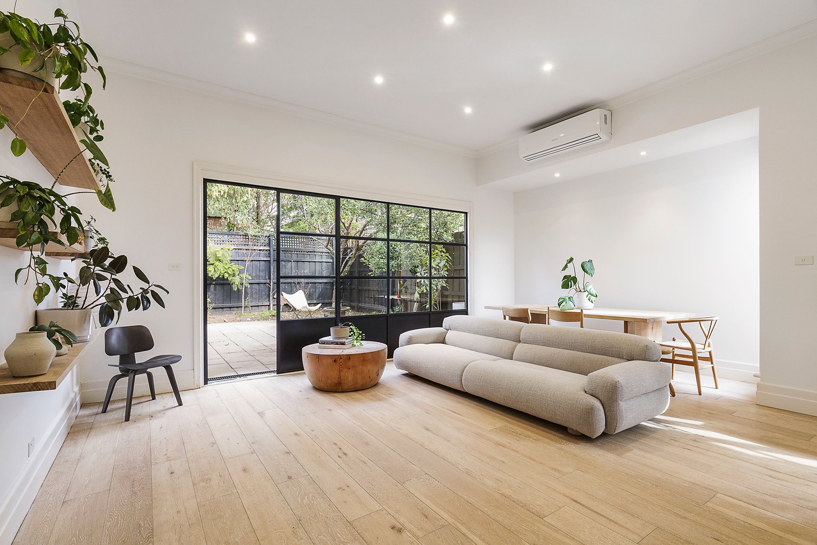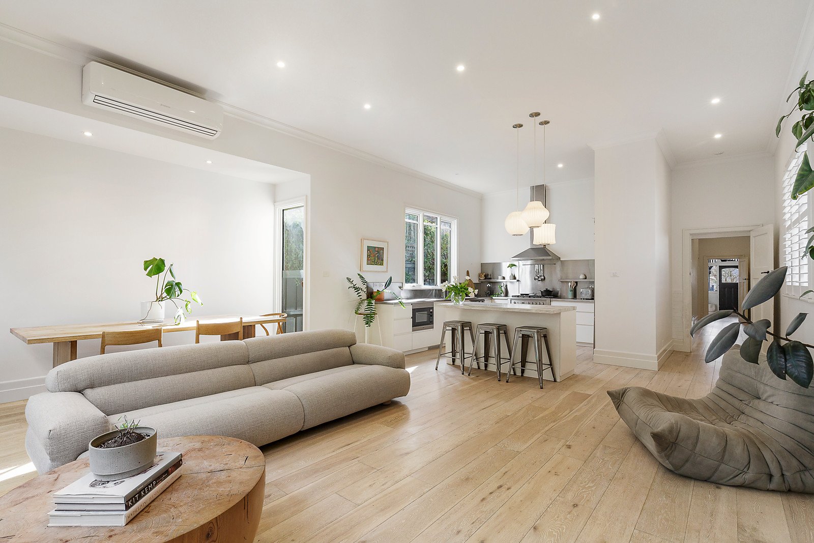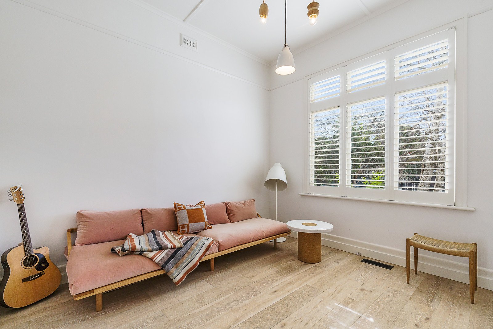 Limed oak floors, custom shutters and bespoke joinery highlight the designer flair through every light-filled dimension. A broad entrance hall leads to a gorgeous sitting room or second bedroom, the lavish main bedroom generous dressing room/retreat/3rd bedroom, and an ultra stylish bathroom with Elba marble and freestanding bath. High ceilings accentuate the sense of space in the expansive open plan living and dining room complete with a gourmet kitchen boasting stainless steel benches and an Elba marble island. Black steel framed doors reveal a large private paved courtyard ideal for al fresco dining surrounded by greenery.