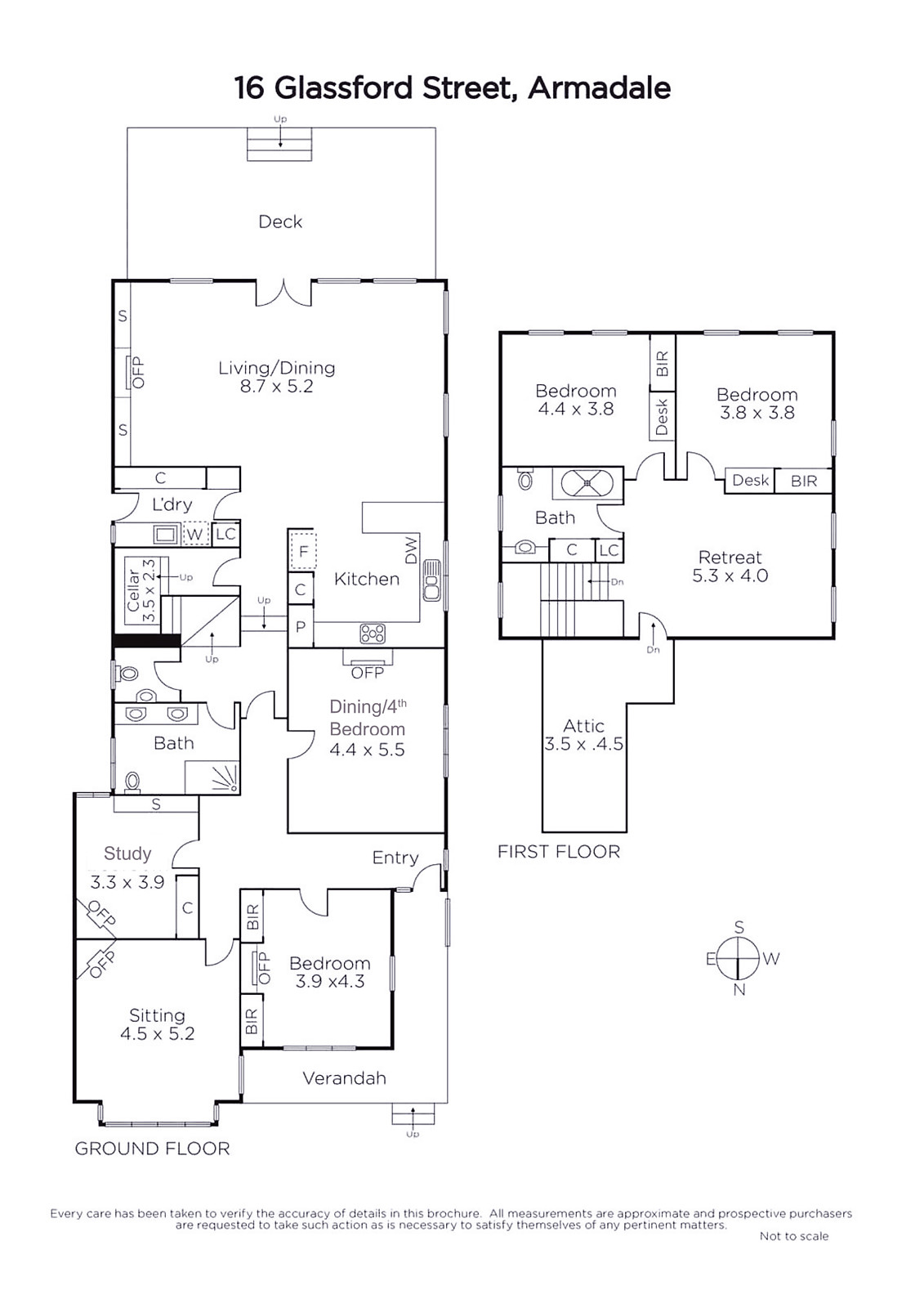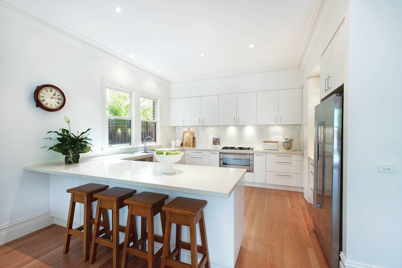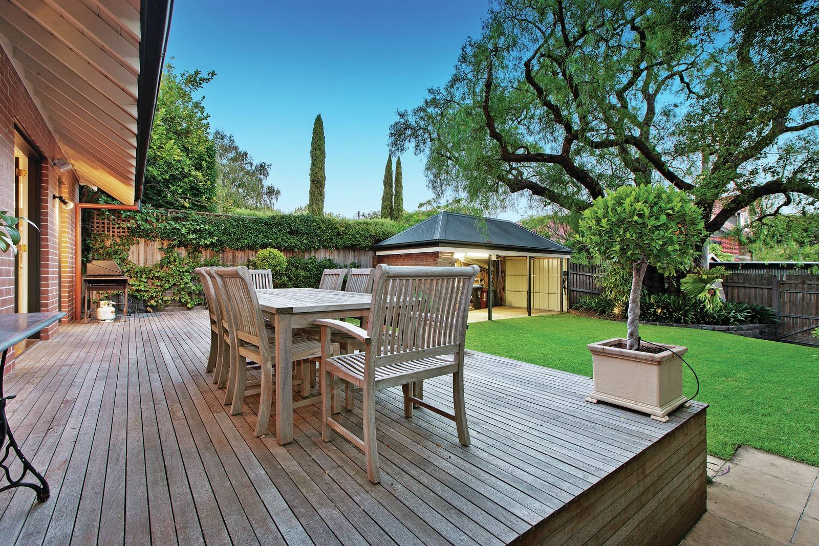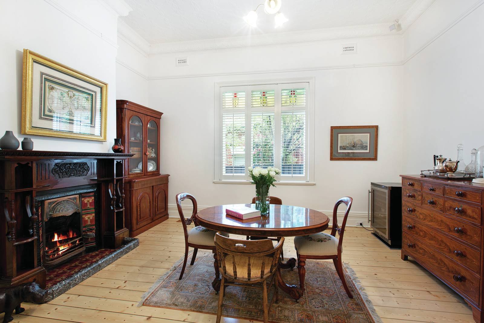 Set behind a row of lush Magnolias, the tessellated verandah introduces an interior replete with pressed metal ceilings, Baltic pine floors and leadlight windows. The L-shaped hall featuring decorative fretwork leads to a beautiful sitting room with marble fireplace, an elegant formal dining room or 4th bedroom with open fireplace and a study with fireplace and built in robe. Brush Box floors flow through the impressively proportioned living and dining room with a gas fireplace and sublime gourmet kitchen boasting stone benches and Smeg and Miele appliances. French doors open out to a deep private leafy garden with a large entertaining deck and carport accessed via rear lane. The gorgeous main bedroom with open fire and built in robes and a Limestone bathroom are downstairs while a fabulous children's zone upstairs comprises two additional double bedrooms with built in robes and desks, a stylish bathroom and spacious retreat.
