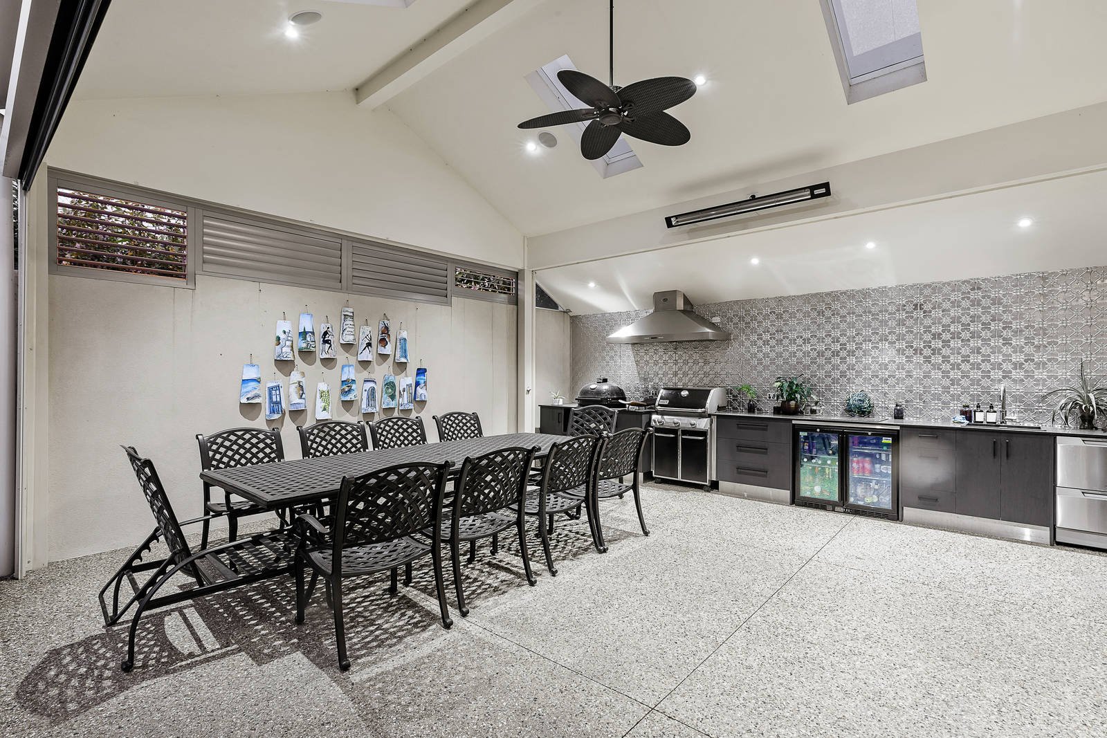 With a firm focus on grand-style entertaining and maximum enjoyment, this property comes with an inviting glass fenced pool (storage room plus WC), water feature and impressive all-weather alfresco complete with outdoor kitchen (Primo Grill/Smoker/Pizza BBQ, induction hotplate, gas Weber BBQ, outdoor fridge and dishwasher), four Bluetooth speakers, electric strip heaters and automated Ziptrak mesh blind.