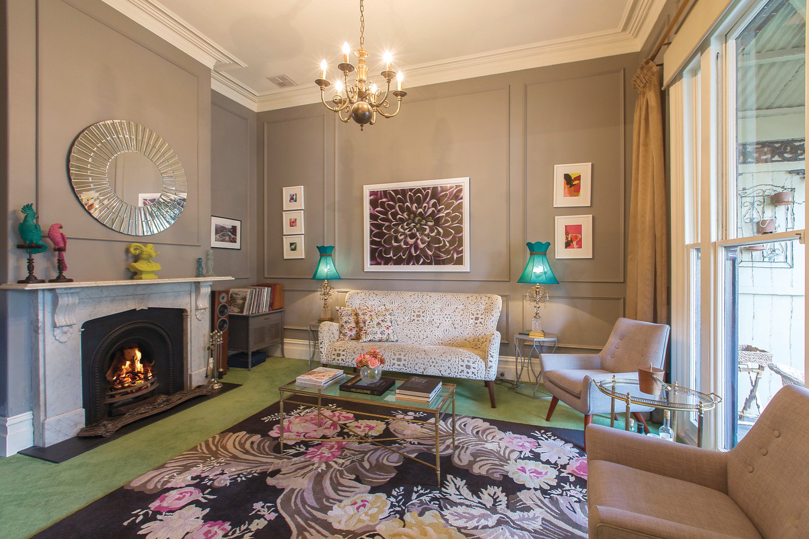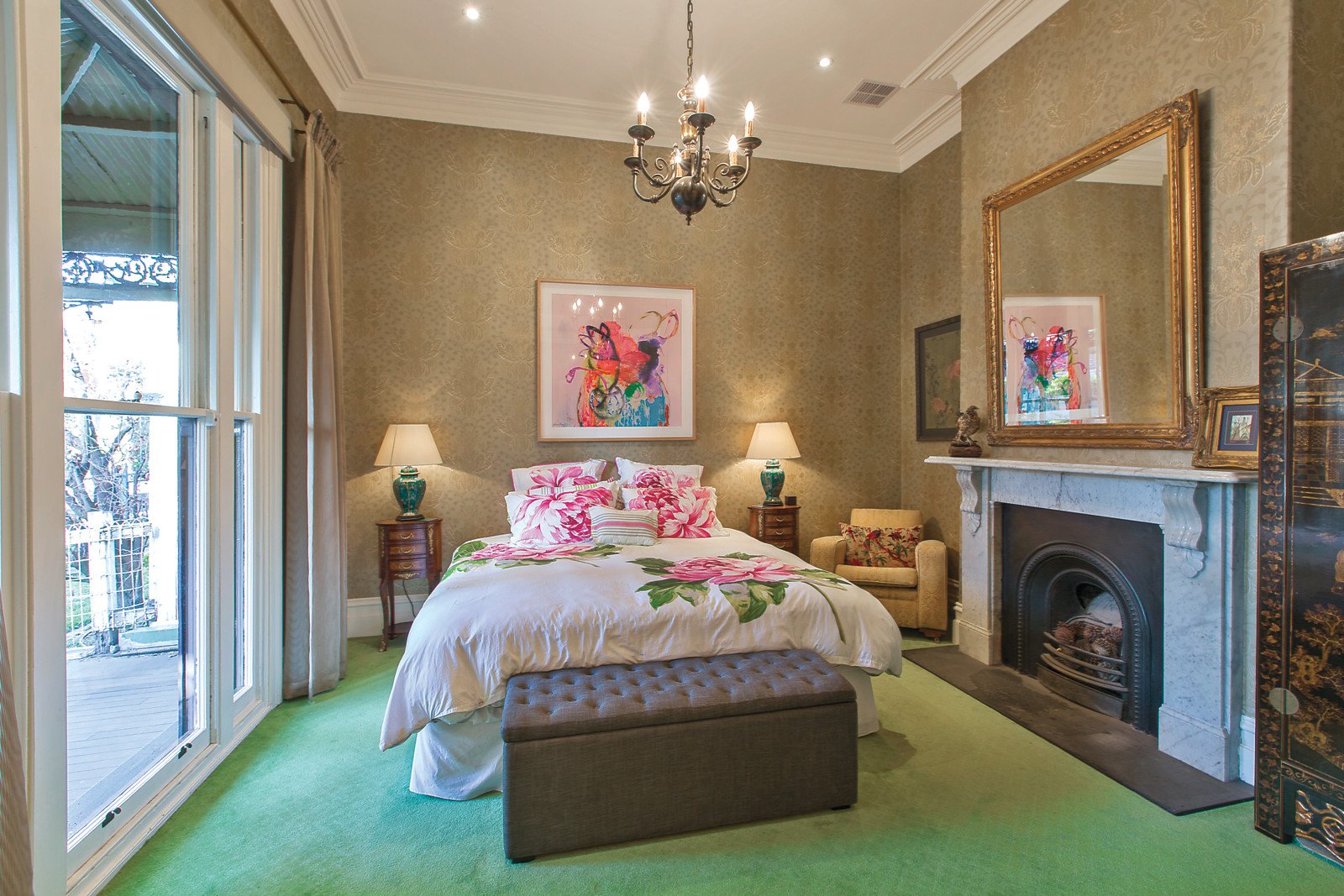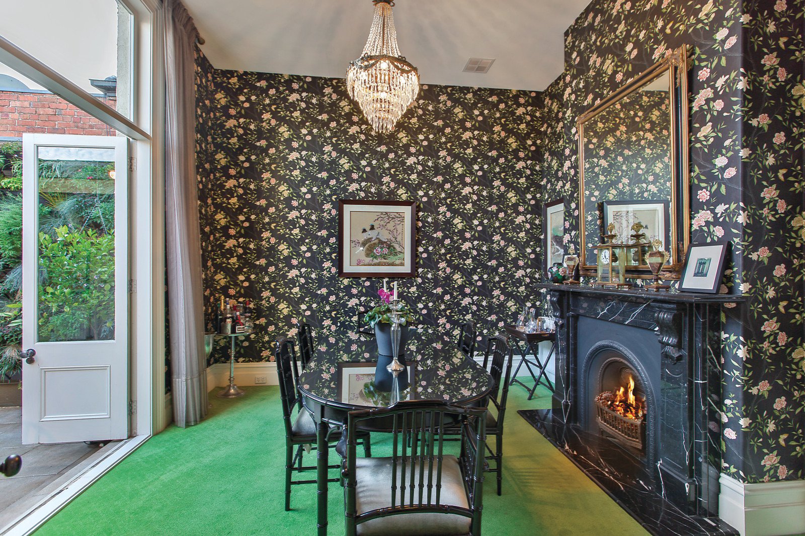 High ceilings and impressive French doors add a wonderful sense of drama and scale to the central arched hallway leading to a refined formal sitting room with marble open fireplace and formal dining room/4th bedroom with a black marble open fireplace. A sun-drenched central courtyard with a picturesque vertical garden opens on two sides through bi-fold doors to create an inviting al fresco area between the formal and informal areas. Solid oak parquetry floors flow through the generous living and dining room with a gourmet kitchen boasting stone benches opening to a private rear garden courtyard with secure off street parking. Three or four gorgeous bedrooms and two designer bathrooms include a main with en-suite, open fireplace and walk in robe.