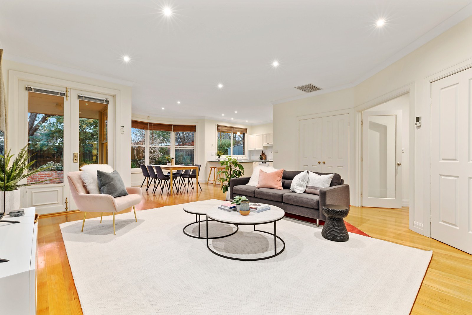 Traditionally configured with separate formal lounge and dining rooms, this enchanting three-bedroom, two bathroom classic has been discreetly extended to offer vast open plan living with room to lounge beside a highly functional kitchen, space to dine around a big bay window before spilling out to lawned and paved entertaining areas resplendent with established gardens. Beautifully detailed with polished hardwood floors, decorative cornices and timber venetian blinds, this centrally heated, cooled and alarmed home features an updated ensuite for the master domain, quality Bosch appliances, robes in most bedrooms and a single lock up garage with additional workshop space.