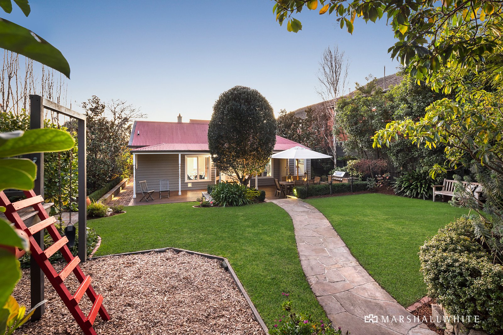 The superbly renovated and extended interior features period attributes including coloured leadlight glass, high ceilings with roses, cornices and Baltic Pine floors. An arched hallway leads to a formal sitting room, four bedrooms, three with BIRs, main with a sparkling new ensuite and a pristine family bathroom. Through to an expansive family domain incorporating an informal meals area, a light-filled kitchen equipped with stone bench-tops and prestige Euro appliances plus living, dining, study alcove and a laundry/bathroom. Opening to a wide deck complete with a built-in gas barbeque and access to a large storeroom or possible home office all overlooking the garden - perfect for alfresco living and relaxing with family and friends. Other features of this beautiful family home include alarm, ducted heating, R/C air conditioner (living), original OFPs, ample internal storage, cubby house/sand pit, front off-street parking, rear double garage/storage + tandem off-street with lane access.