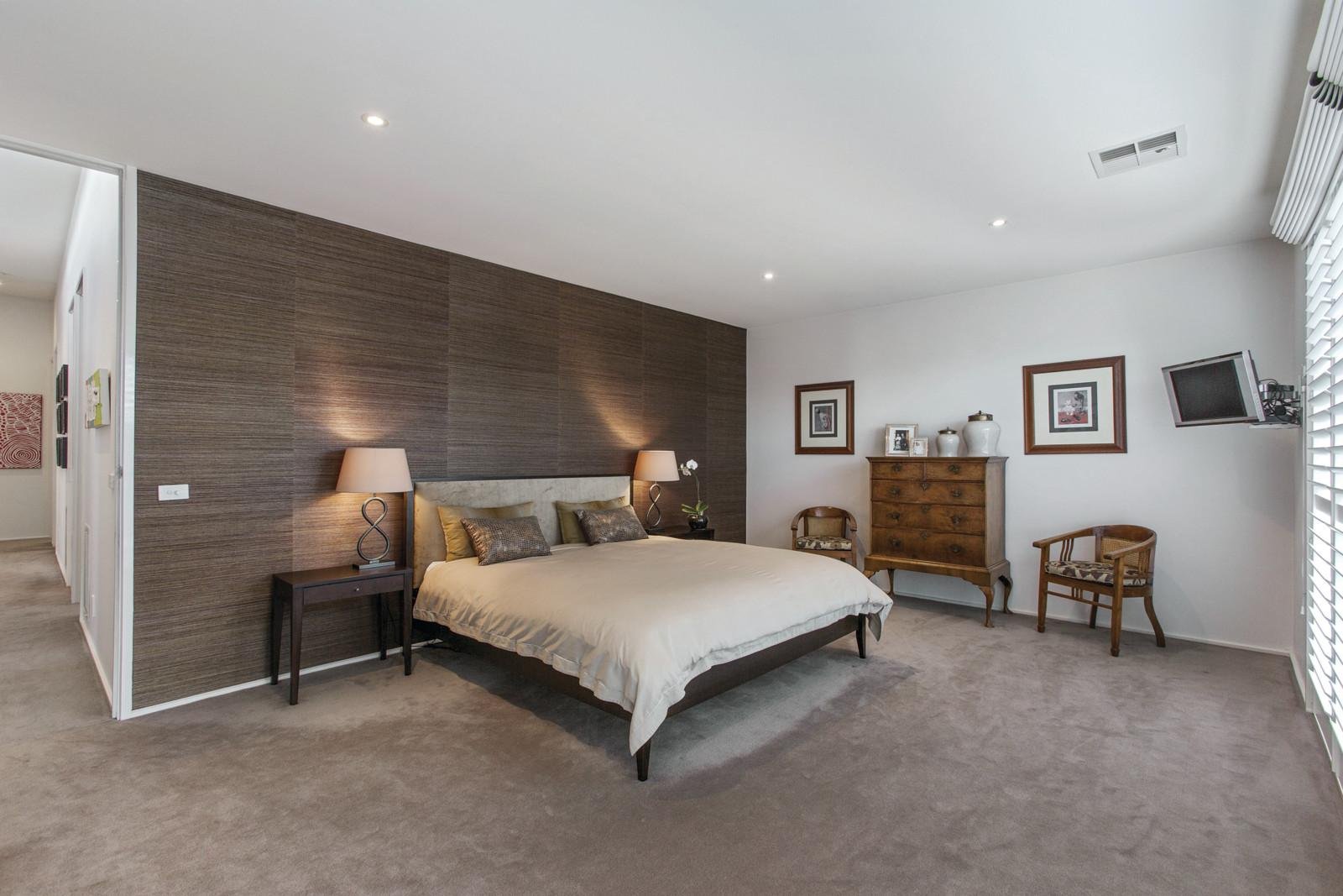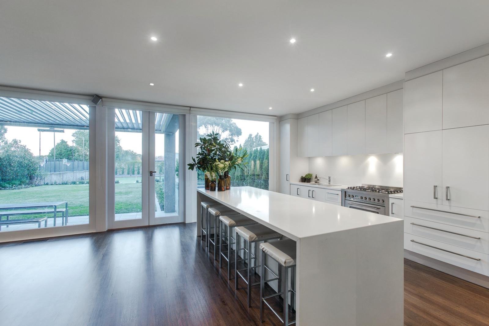 Dark stained timber floors, vast expanses of glass and sleek lines highlight the sublime designer flair throughout. Intelligently oriented to the north, the generous sitting room (OFP), stunning fitted study and expansive living and dining room all stream with year round northern light. The streamlined gourmet kitchen caters impeccably to any requirement with European appliances and stone benches. Glass sliding doors extend living and entertaining out to surrounding Vergola covered terraces overlooking the picturesque deep northeast garden, solar-heated pool and floodlit mod grass tennis court. Sensational bedroom accommodation upstairs includes a beautiful main bedroom overlooking the tennis court with walk in robe and stylish en-suite, complemented by four incredibly spacious bedrooms with built in robes, a study and designer bathroom.