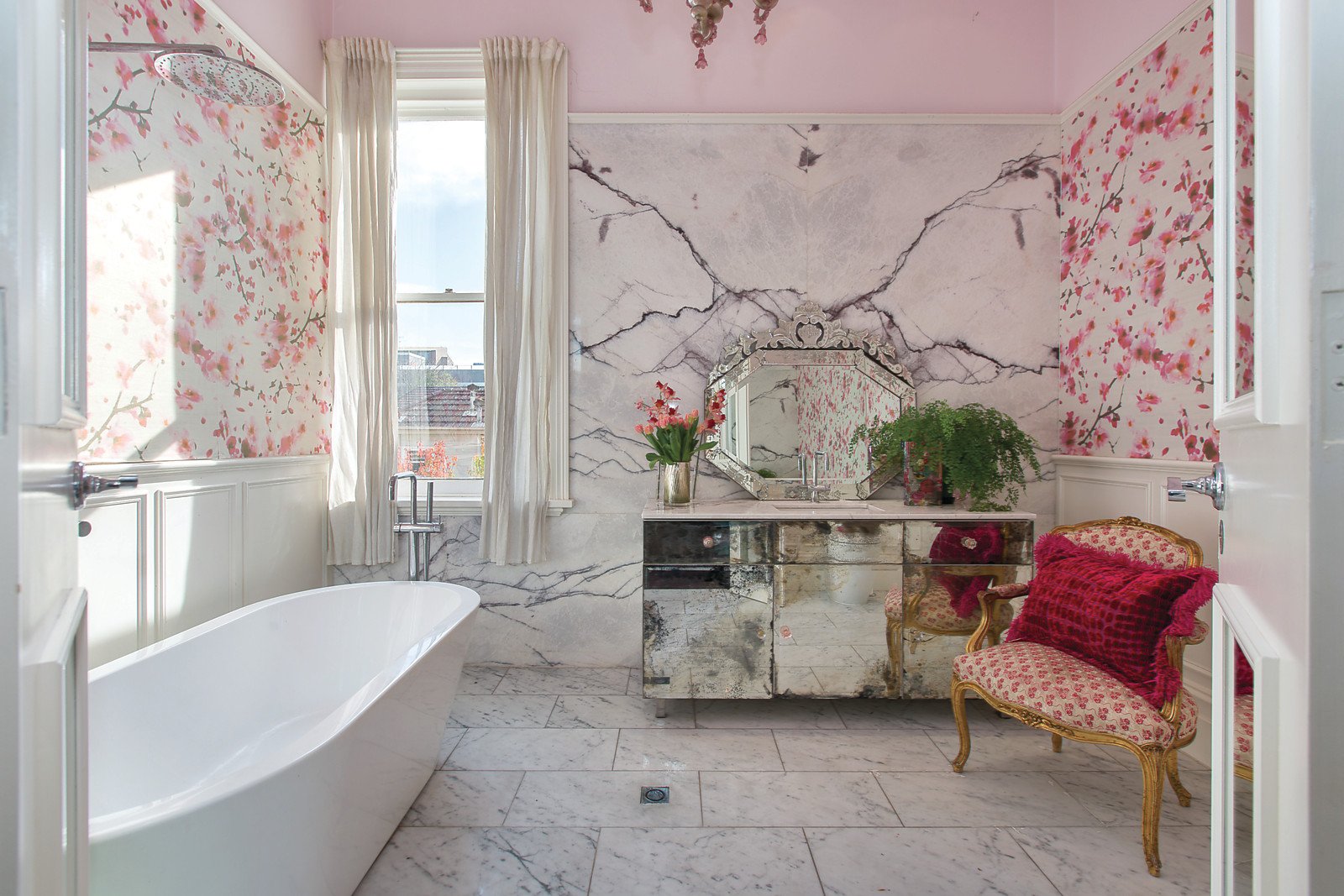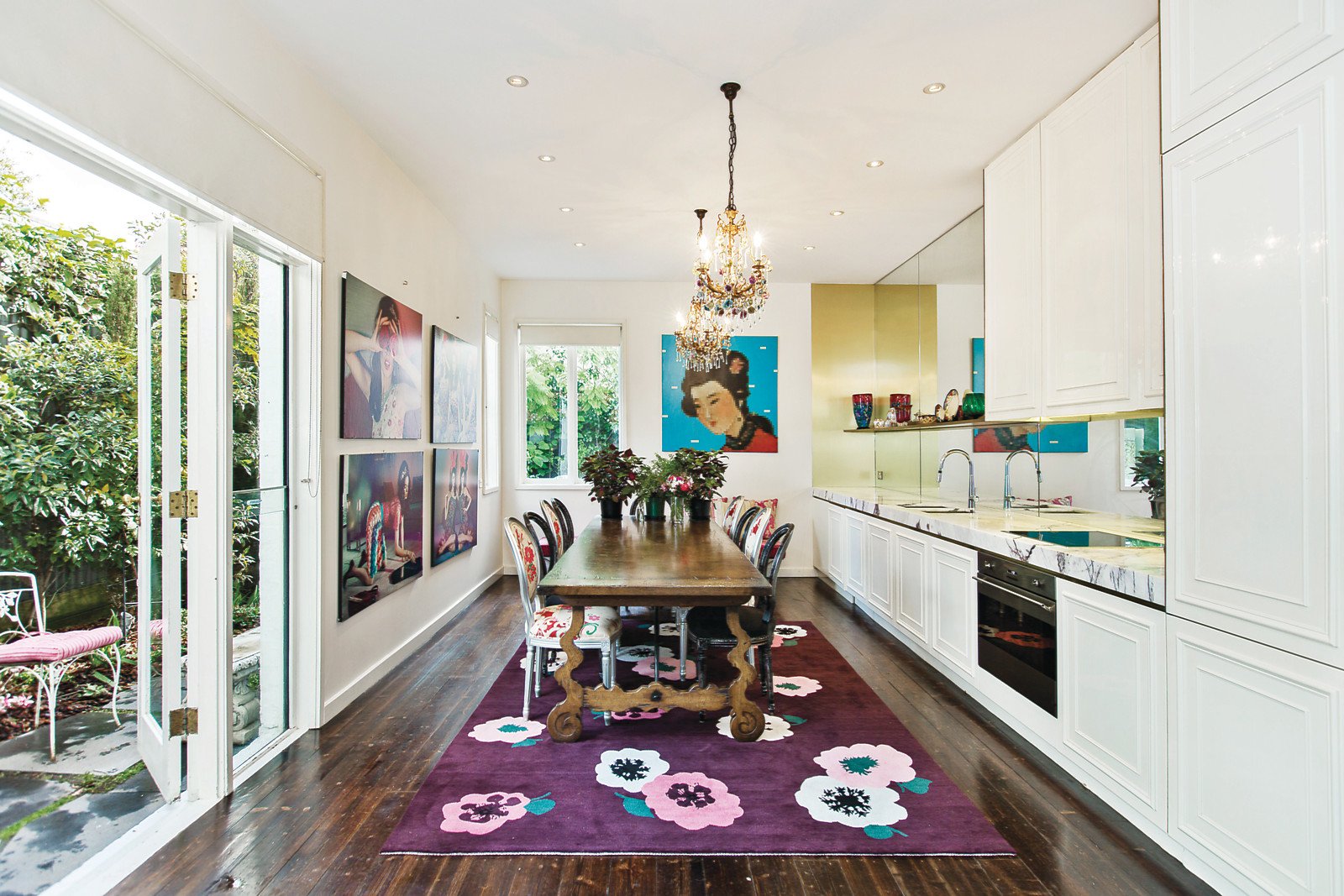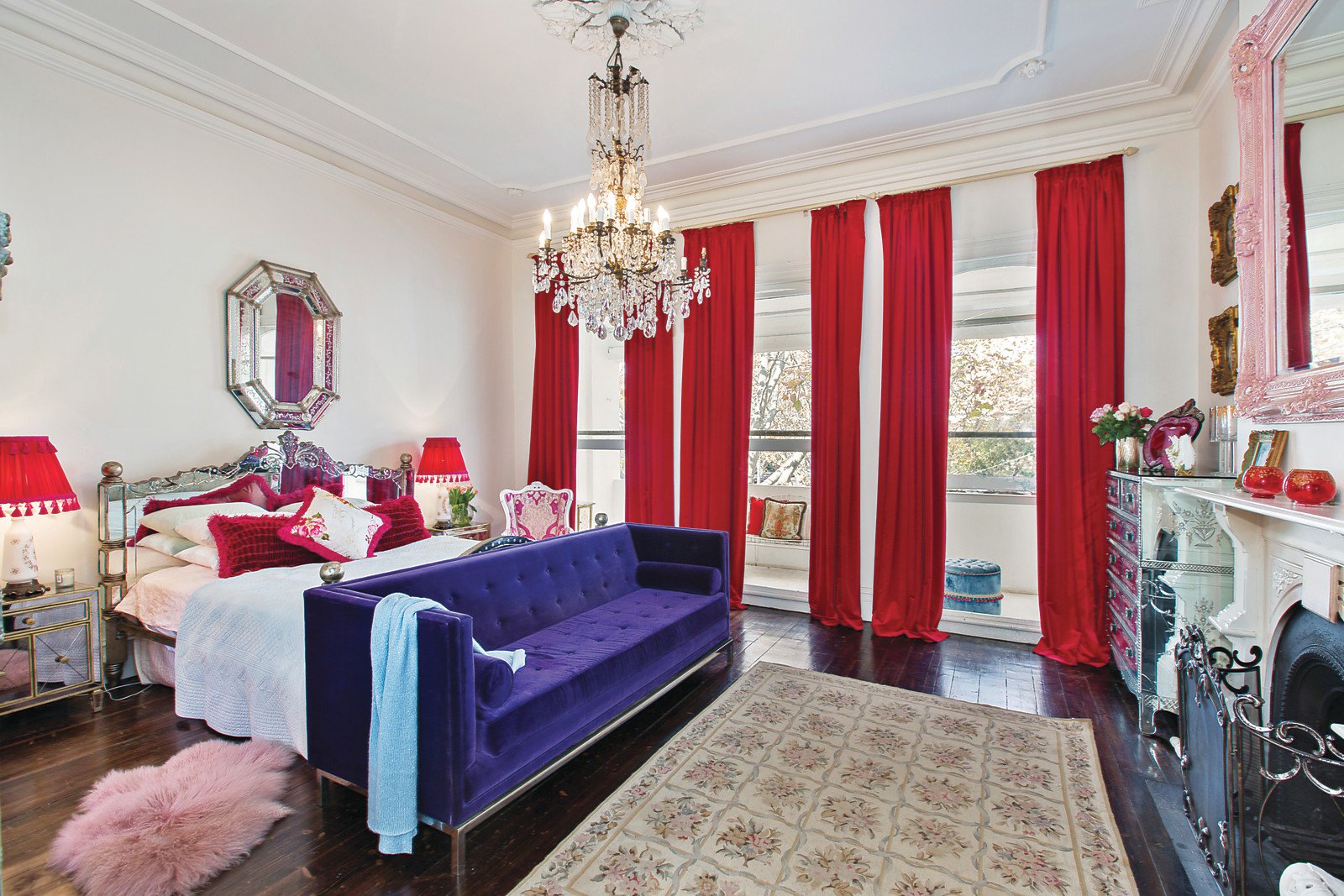 An exquisite example of its 1880's Boom Style beginnings, this balconied Victorian is a rare illustration of the area's early architectural heritage, showcasing grand period aesthetics matched by sublime interior design by revered Australian fashion icon Alannah Hill. Just a block from the beach, proudly placed amongst illustrious period residences, this home reveals a series of sophisticated living and dining domains highlighted by marble fireplaces and soaring ceilings, and a striking marble kitchen with oversized dining area. A full complement of high end Miele/smeg appliances and an integrated fridge/freezer accompany the kitchen. A dramatic staircase leads to three upstairs bedrooms including a privately zoned, provocative main with rich velvet curtains, balcony, open fireplace, dressing room and marble ensuite. Family bathroom, powder room, NW courtyard garden and rear laneway access. A sophisticated balance of glamour and style - a memorable home for those accustomed to the very best - just a block from St Kilda Beach and Catani Gardens, moments from the Fitzroy Street scene, MSAC and Albert Park Lake.