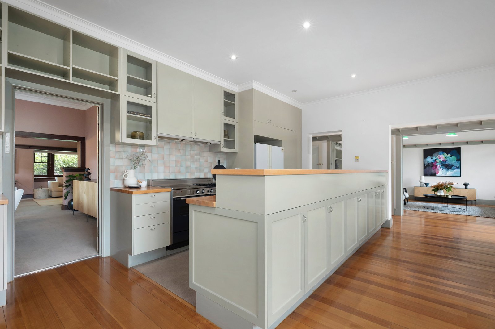 Prestigiously located in one of Brighton’s most coveted beachside neighbourhoods, this grand, circa-1930s solid brick California Bungalow on 1244 sqm* will captivate with a host of unique and outstanding features including a championship-size north/south tennis court. Cherished by the same family for almost four decades, the six-bedroom home’s classic features, such as timber batten panelling, ornate picture rails, fireplace with overmantel, and box bay windows, have been meticulously restored and maintained, while the classic styling has been continued in a later architect-led renovation and extension, with fittings and custom joinery that match the home’s original dimensions and features.