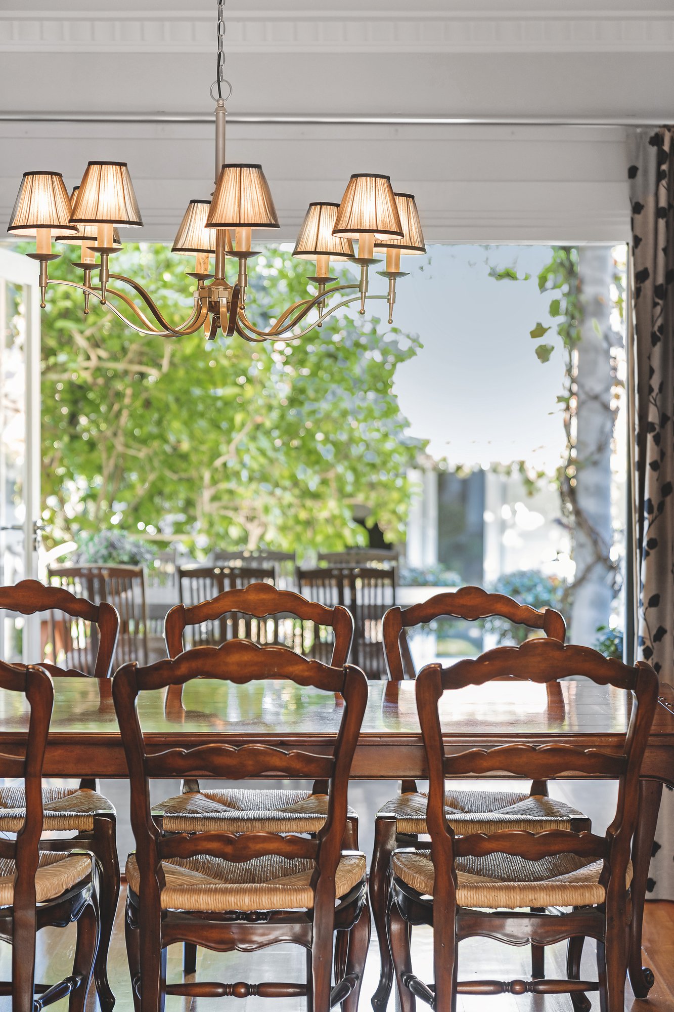 Entertainment is effortless in the formal dining room, with bi-fold doors that open to an outdoor dining oasis, complete with a pizza oven ideal for hosting memorable gatherings. An additional dining space adjacent to the kitchen offers garden vistas through floor-to-ceiling windows, creating an enchanting backdrop for any gathering. This seamless integration of indoor and outdoor spaces ensures that entertaining is both stylish and functional, catering to all occasions with ease.