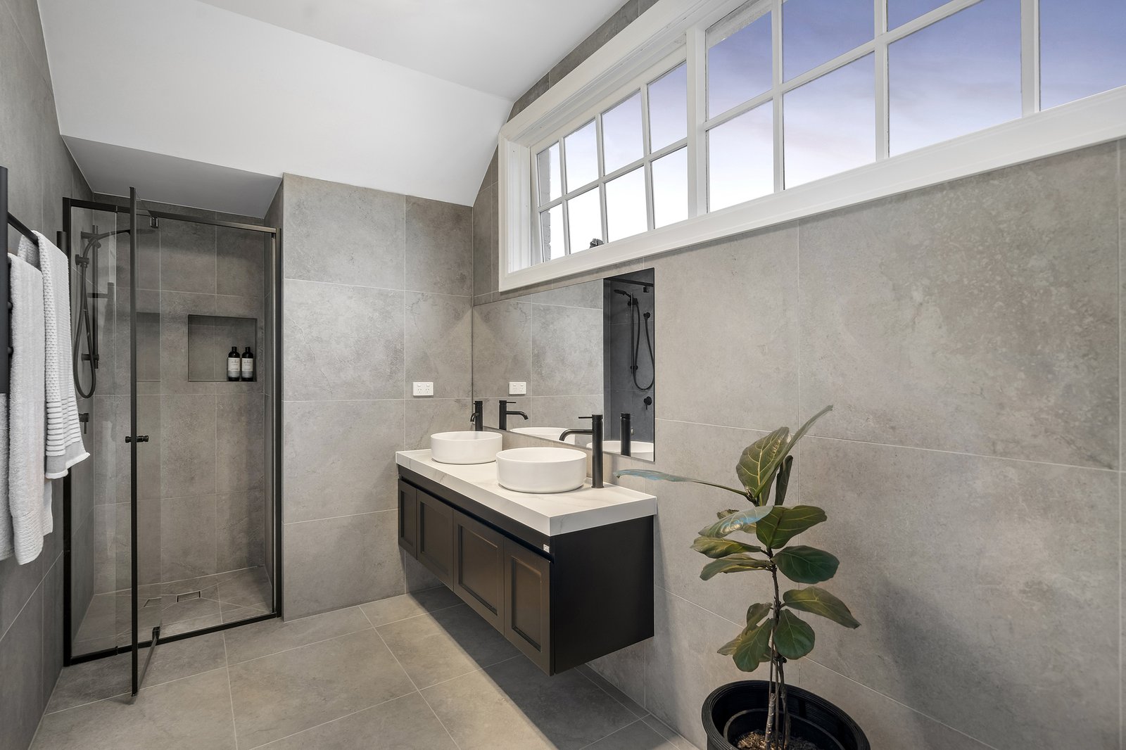 Upon entering, guests are welcomed by a classic foyer adorned with warm wooden floorboards and plush carpeted stairs leading to the private bedroom quarters. Each bedroom is equipped with built-in robes, providing ample storage and organisation. The master suite, a true retreat, features a luxurious walk-in wardrobe, bi-folding doors opening onto a vast balcony showcasing breathtaking city views, an elegant ensuite adorned with silver fixtures and floor-to-ceiling tiles.