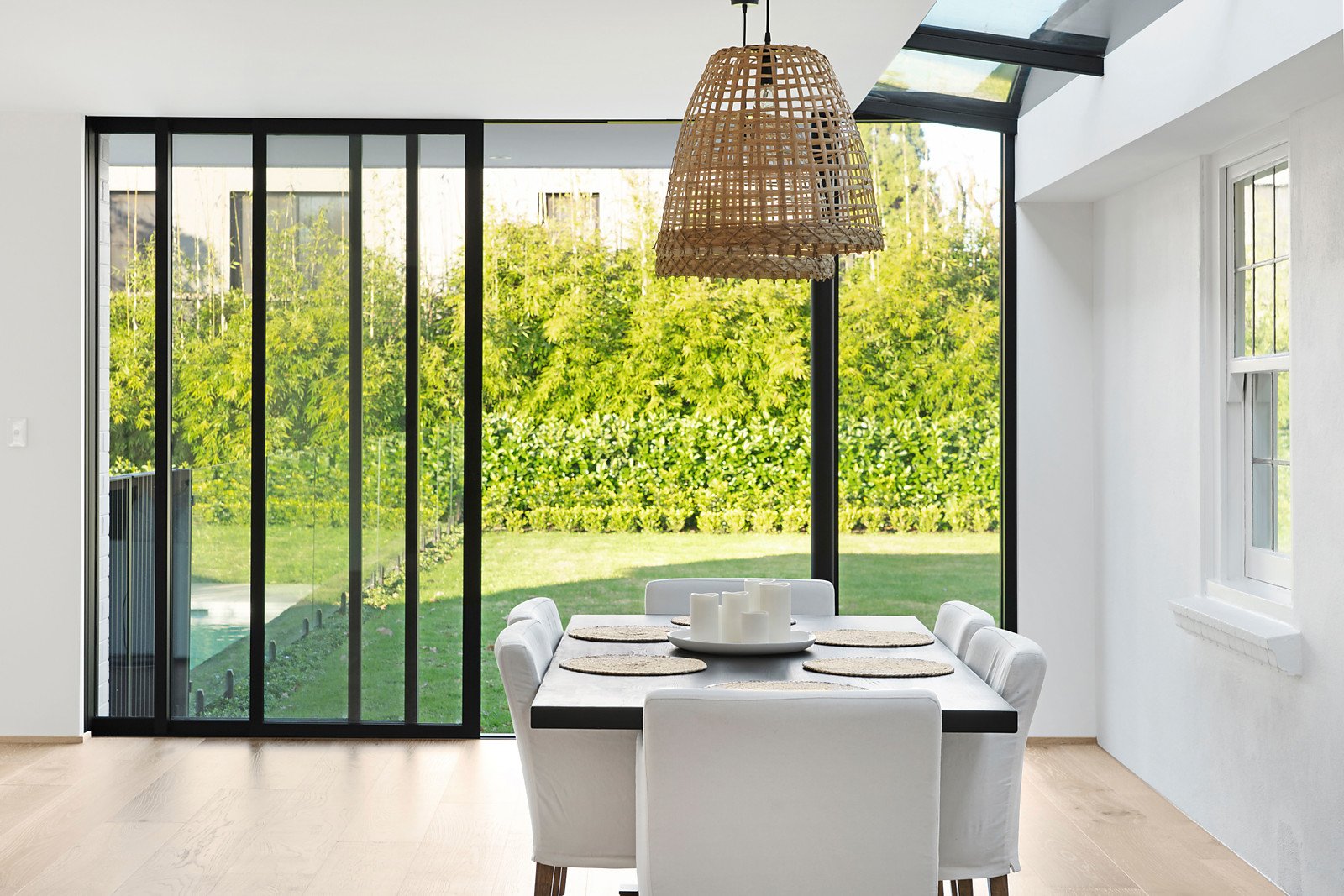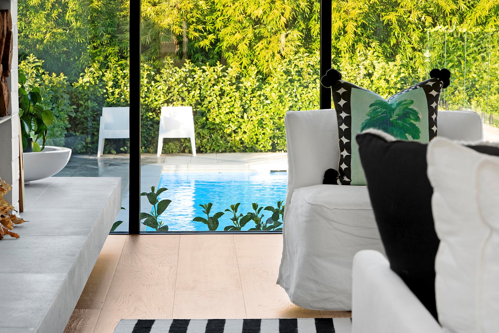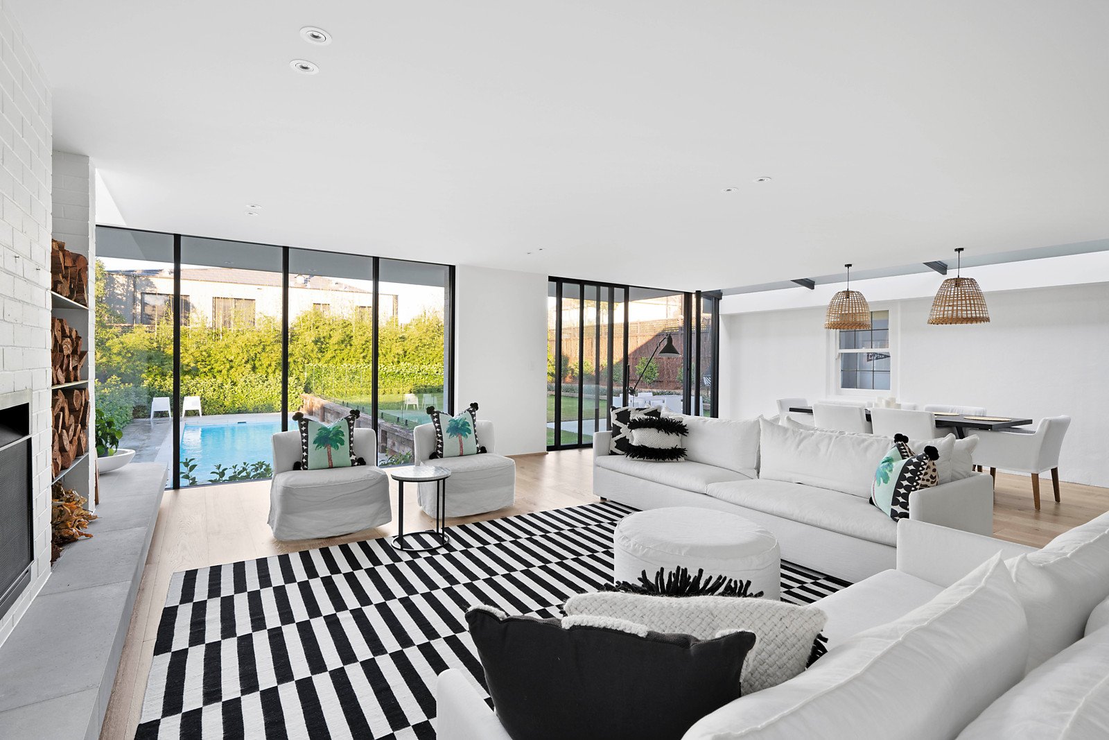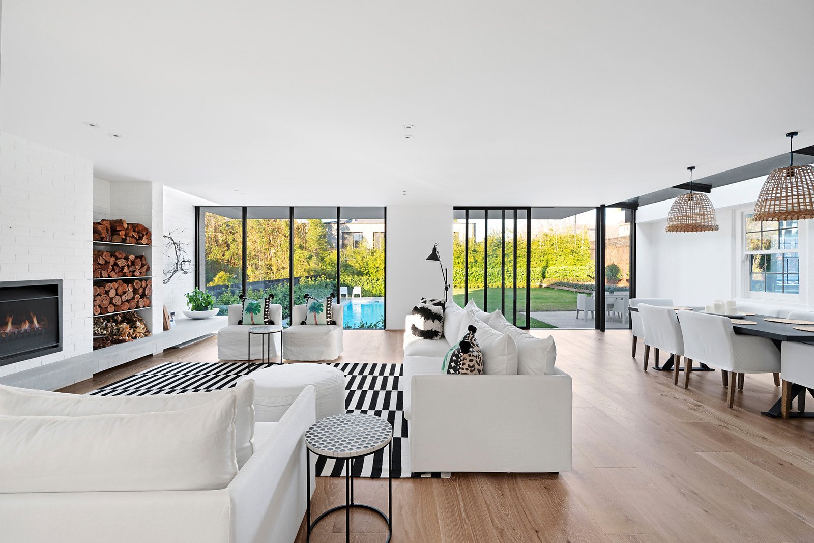 Behind an enticing entrance the central foyer leads to a serene main bedroom including dressing room/ensuite adjacent to an elegant entertaining room or guest room. The well-appointed kitchen, bright family dining area and fabulously large living room are accentuated by the surrounding tall glass doors and windows leading to an expansive heated pool and glorious private landscaped gardens. The flexible accommodation includes a privately zoned bedroom suite with its own dressing room, en suite and entrance offering excellent accommodation for an au pair or independent teenager. Upstairs are two further beautifully proportioned bedrooms including central bathroom.