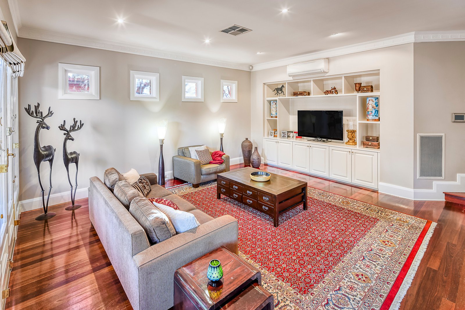 Conveniently positioned in one of Glen Iris's finest quiet tree-lined streets, this single level renovated c1923 brick Californian bungalow enjoys rooms of exceptional proportion surrounded by established trees and manicured gardens. Enviable family-friendly positioning and close to a range of private schools and primary schools, Gardiner Park, Howard Dawson Reserve, Gardiner Station, Burke Road trams and Tooronga Shopping precinct, shops and cafes. A welcoming entrance of leadlight and lovingly restored Baltic pine floorboards introduce three large bedrooms and a second living area/fourth bedroom with a restored fireplace. The main bedroom featuring a walk-in robe, fully tiled ensuite and reverse cycle air conditioner/heating is accompanied by two additional double bedrooms ideal for any family to enjoy. The stunning large main bathroom features a concealed toilet and oversized shower and is conveniently located close to the family area. Custom forest red hardwood floors introduce an open space gourmet kitchen with Smeg appliances and a separate pantry. A separate dining space is surrounded by a private garden overlooking sunsets to the west. A large light-filled second family living area features built-in cupboards and a second split system air conditioner/heater. Beautifully presented throughout, it includes gas ducted heating as well as evaporative cooling throughout, CCTV, alarm, double carport, 5000L water tank and remote control security gates. Land size 680sqm approx.