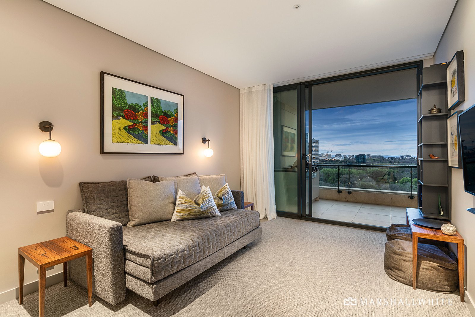 Widely acclaimed as one of Melbourne's landmark residential developments, the extremely tightly held apartments at 'The Melburnian' deliver luxury finishes and first class resident only facilities including a 24 hour concierge, a fully equipped gym and swimming pool. The location oozes lifestyle advantages, including a short stroll to NGV, Botanic Gardens, Myer Music Bowl, Southbank Boulevard, Arts and Sports Precincts, Flinders Lane, CBD and public transport. This spacious and stylish 16th floor two bedroom, two bathroom, and study residence has been completely renovated throughout, offering finishes of the highest quality. The living and dining domain and bedrooms all feature impressive floor to ceiling windows showcasing exceptional and uninterrupted 180 degree views of the CBD, NGV, Kings Domain and Royal Botanic Gardens. A north-east facing covered balcony is suitable for year round entertaining and, a well-appointed kitchen features a full complement of European appliances, built in fridge, and storage. Additional appointments include heating/cooling and two secure car spaces.