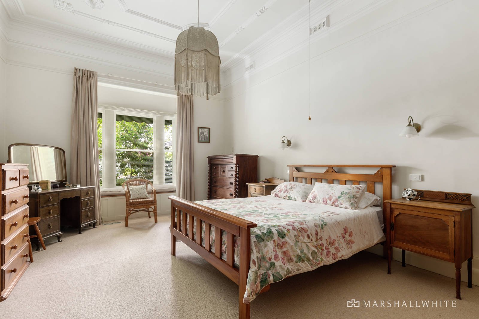 Entirely comfortable now, it is ideal to live in while considering plans to renovate and extend or rebuild within the private leafy northwest facing garden. Setting the tone with its glorious high ceilings and majestic arch, the generous entrance hall flows through to a gracious sitting room beneath a captivating original timber panelled ceiling and the equally elegant formal dining room with a bay window. The beautifully proportioned main bedroom is also capped with a highly ornate ceiling. There are two additional double bedrooms, a sunny fourth bedroom or home office with west-facing balcony and two bathrooms. The inviting family room served by a well-equipped kitchen loaded with storage options opens to the private leafy northwest garden.