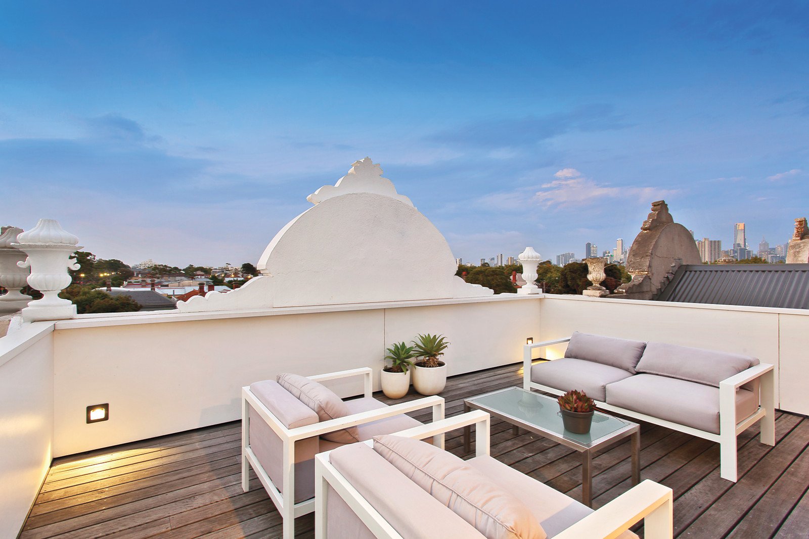 Thoughtfully designed to maximise natural light and space, grandly proportioned lounge and dining rooms showcase original marble fireplaces and are complemented by open plan living, overlooking the tranquil rear garden, through full height double glazed glass doors. An unrivalled rooftop terrace, with 360 degree views of the spectacular city skyline completes this superb setting, ideal for lavish entertainment. A state of the art gourmet kitchen features Miele appliances including pyrolytic self cleaning and steam ovens, sleek stainless steel mirrored splashback and Calacatta marble benchtops, as well as a most impressive butler's pantry.