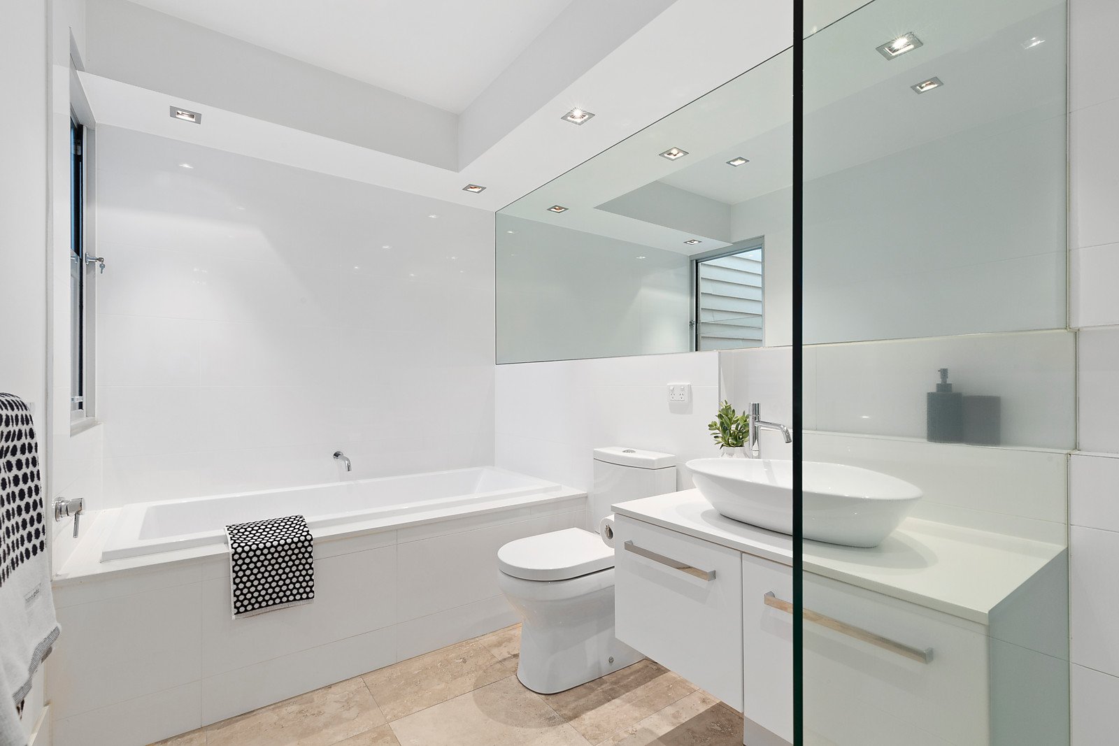 An arched hallway featuring high ceilings and timber floors flows through to a sitting room, a gorgeous downstairs bedroom with open fire and built in robes and a designer bathroom. Upstairs are an additional two spacious bedrooms with walk in/built in robes, a further bathroom and a north-facing sun-deck with a picturesque outlook. Polished concrete floors and high ceilings accentuate the sense of space and light in the expansive open plan living and dining room, with a sublime Calacutta marble kitchen boasting Miele appliances and fully integrated fridge/freezer. Full height glass sliders extend the living out to a private north-facing decked courtyard with access to rear lane.