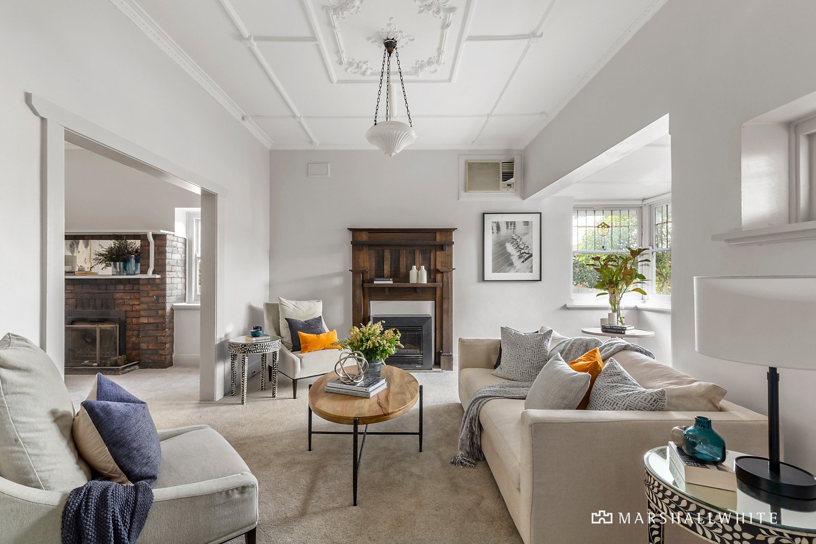 Imposing proportions, ornate ceilings and leadlight windows highlight the rich character through the wide central entrance foyer, gracious sitting room with an alcove and gas fire and the grand formal dining room with an open fire. An expansive living room and separate well-appointed kitchen with a breakfast bar overlook the deep private west-facing garden with a large entertaining deck and garage. A double bedroom with fireplace, a home office or 5th bedroom and bathroom are on the ground level while upstairs there are two additional bedrooms with built in robes, a study area, 2nd bathroom and, enjoying wonderful leafy views, the spacious main bedroom with walk in robe and en suite.