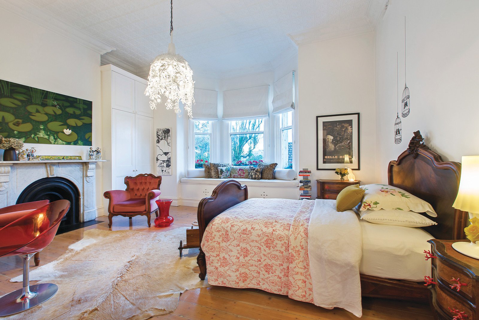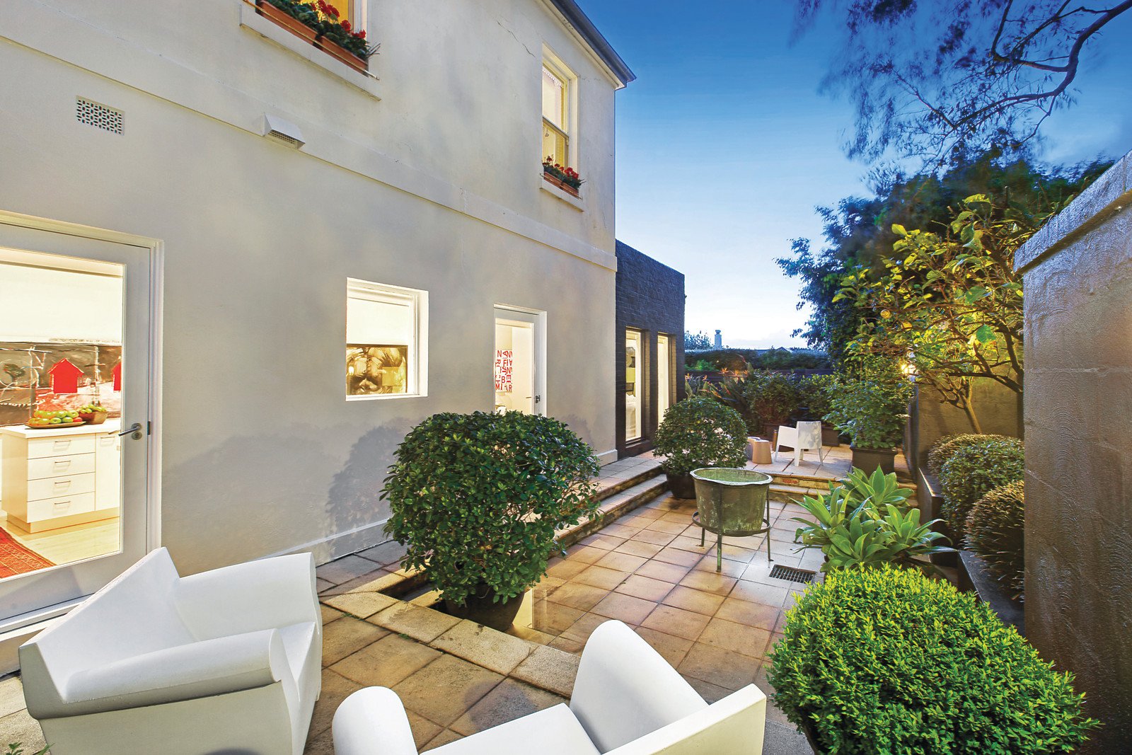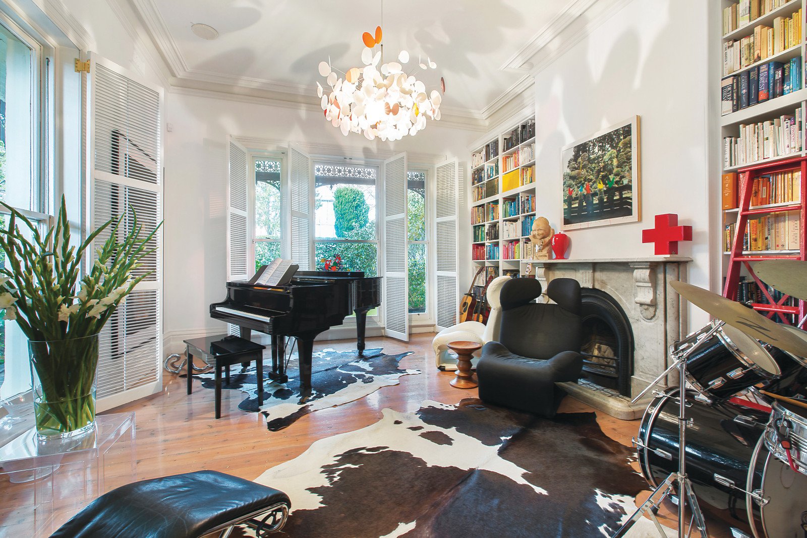 Framed by lush established gardens and a return tessellated verandah, the imposing arched entrance hall featuring limed Baltic pine floors and high ceilings introduces a beautiful sitting room with marble open fire and full length windows and an equally captivating retreat or media room with a black marble fireplace. The sleek, white superbly appointed kitchen and generous living and dining room beneath a glass ceiling open to the deep private north garden with an expansive entertaining terrace and tropical pool. The glorious main bedroom beneath a pressed metal ceiling is appointed with a full width balcony, marble fireplace, walk through robes and chic en-suite. A second double bedroom with pressed metal ceiling, marble fireplace and window seat is complemented by a third bedroom with built in robe and open fire and a study or 4th bedroom.