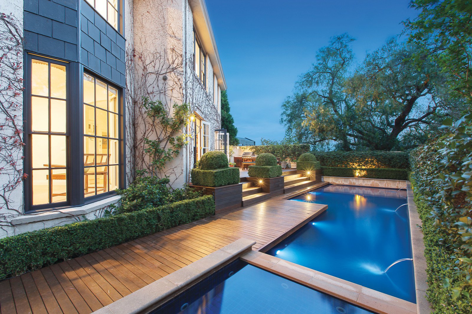 Set back from the road in a private and secluded position, this impressive two-storey family residence is highlighted by fastidious recent refurbishments including a repainted interior, new carpets, bath and powder rooms; plus vistas of the tranquil gardens and mature trees surrounding it. An elegant home which delivers excellent zoned living and entertaining areas featuring generous family spaces flowing to a northern split-level deck which overlooks a night-lit solar heated, self-cleaning pool, spa and a water feature - perfect for indoor/outdoor relaxation or dining with family and friends.