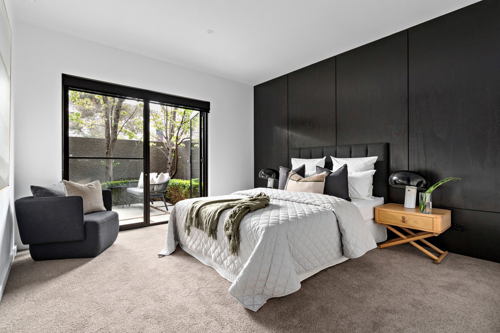 Wide stairs ascend to a second living area with spectacular views and a study area, whilst the lower entry level reveals two bathrooms and three queen-sized bedrooms, all with robes and exterior garden connections. The sumptuous main features a poolside outlook with a twin en-suite and a large walk-in robe, with an adjoining high-walled courtyard draped in Boston ivy that spills to the pool. Zoned for Albert Park College within a sought-after tree-lined street on the edge of thriving lifestyle precincts, the beach, city-bound transport and Albert Park Lake recreation fields, it offers unwavering appeal, complete with double glazing, alarm system, video intercom, powder room, full laundry, automated irrigation, reverse-cycle heating/cooling and a double remote garage via Felix Lane.