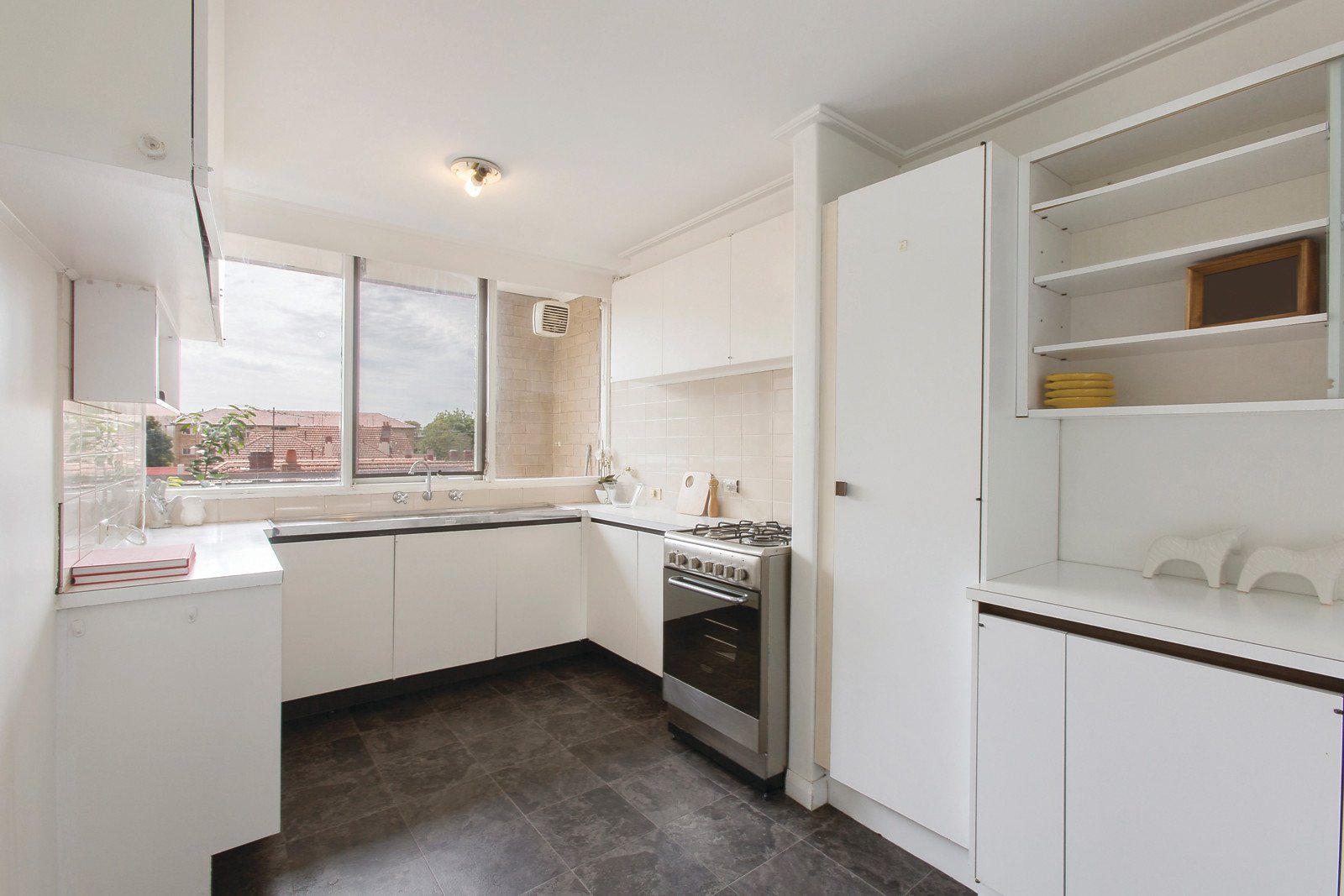 Blessed with a sunny north facing aspect and highly prized CBD skyline views, this top floor apartment's spacious two bedroom proportions will richly reward those seeking an iconic St Kilda lifestyle. In a blue chip address, tucked quietly away at the rear, the comfortably presented layout provides an immediate invitation to beachside living as well as easy scope for contemporary revival (STCA) adding value if or whenever desired. An astutely designed floorplan uses a reception entry to introduce open plan living/dining spaces with broad balcony and a large kitchen with stainless-steel gas cooker and workstation against the view. The two generous double bedrooms with robes share an updated modern bathroom with bath, independent shower and laundry taps, whilst the retreat style main bedroom features extensive built in robes and additional storage. Adding further comfort is a powder room, intercom security and secure undercover carspace. All of this is just a short walk to West St Kilda Beach , foreshore promenade, Catani Gardens and trams at your doorstep.