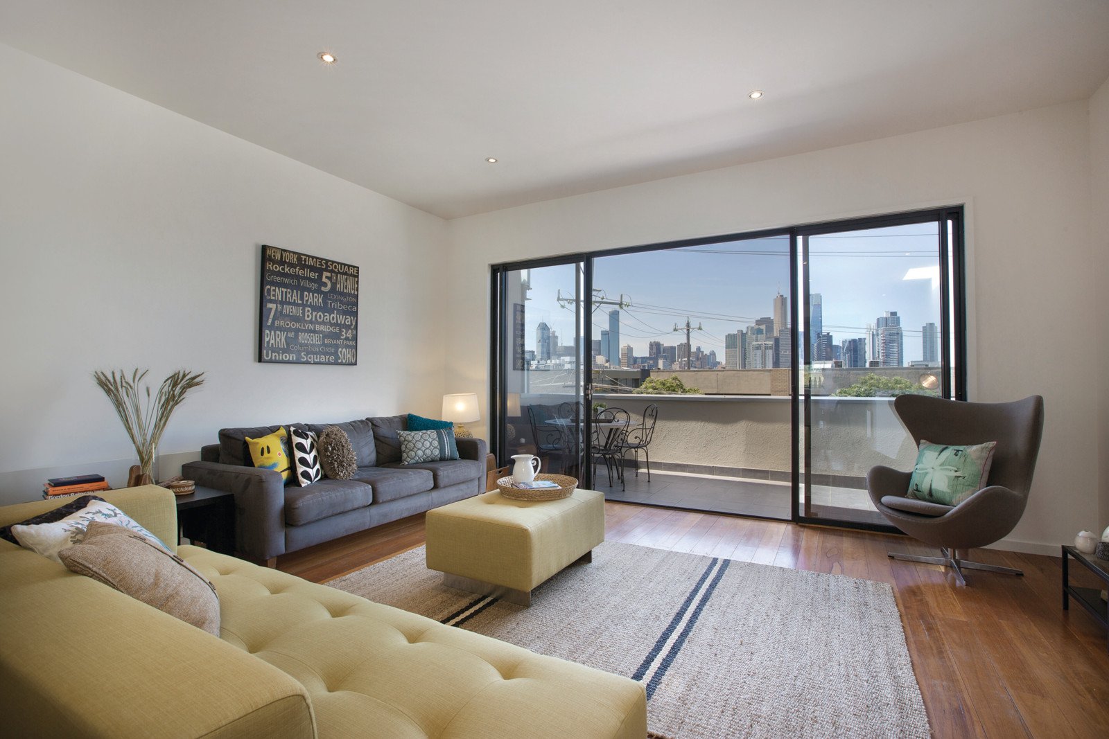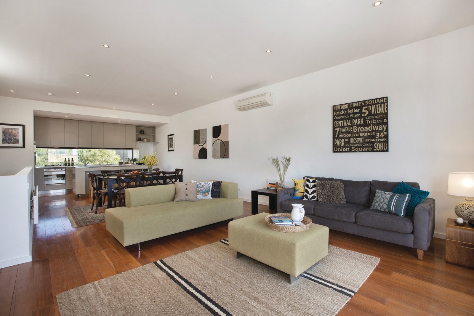 A design defined by ultimate flexibility, offering work from home options that complement outstanding residential appeal, ensures this light filled contemporary property responds to a wide range of preferences and priorities with style and success in a city edge setting. The generous ground level proportions of a versatile second living space or home office with its own entrance, powder room and access to a secure double garage precede upstairs accommodation comprising a beautifully bright main bedroom with ensuite, two additional double bedrooms, all with BIR's, a leafy aspect, and an attractively appointed central bathroom. On the top level, polished floorboards, abundant light and expansive city views from a full width terrace complement sensational living/dining spaces accompanied by an open plan kitchen equipped with stainless steel surfaces, smeg appliances, a walk in pantry and large island bench on wheels. Fresh paint, new carpets, ample storage, cafe awning - the quality is clear, the convenience is compelling. South Melbourne Market, Bay Street, the city and the beach are all within a leisurely stroll.