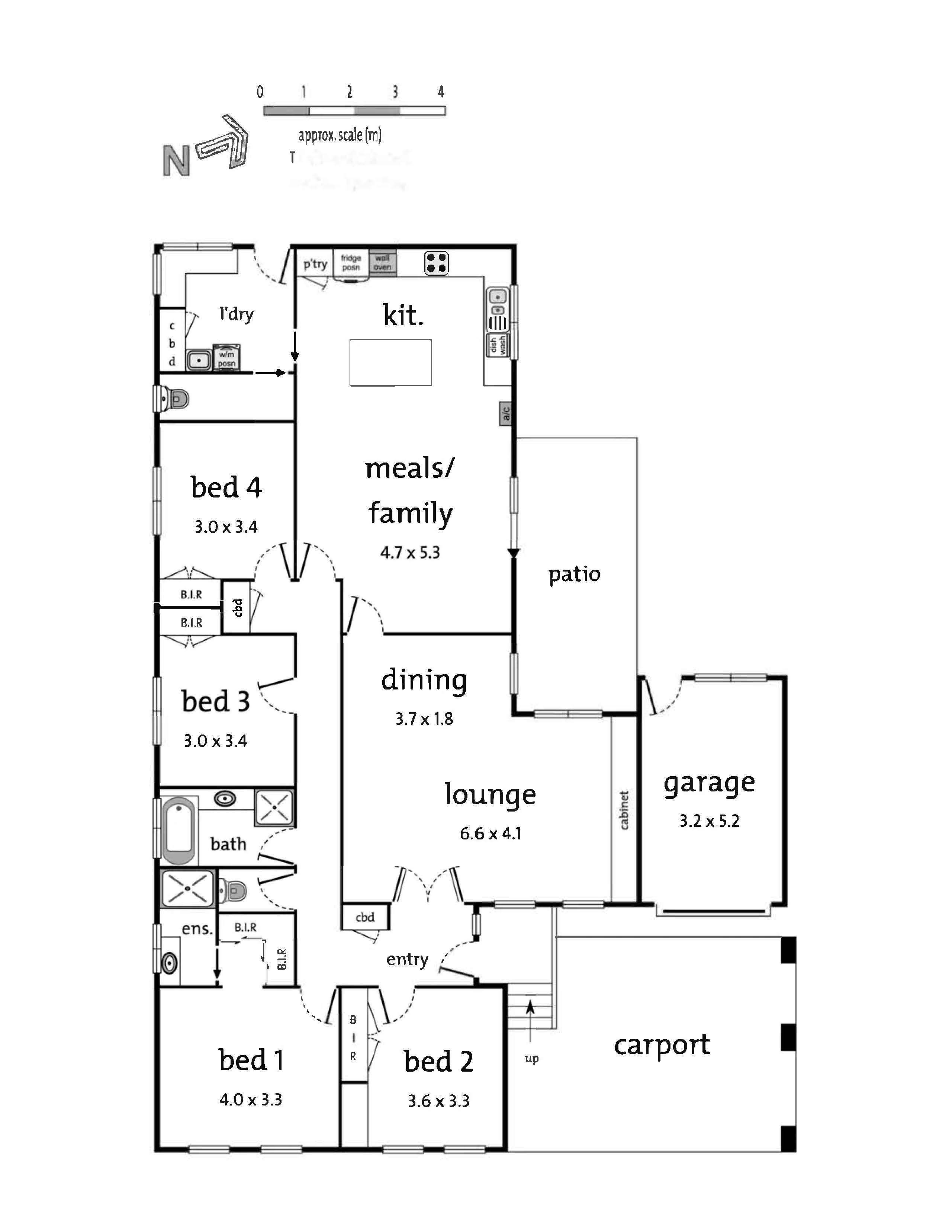 Accommodation includes four well-sized bedrooms, each with built-in robes. The master bedroom enjoys a private ensuite, while a central main bathroom services the remaining bedrooms. A well-appointed laundry provides access to the rear garden.