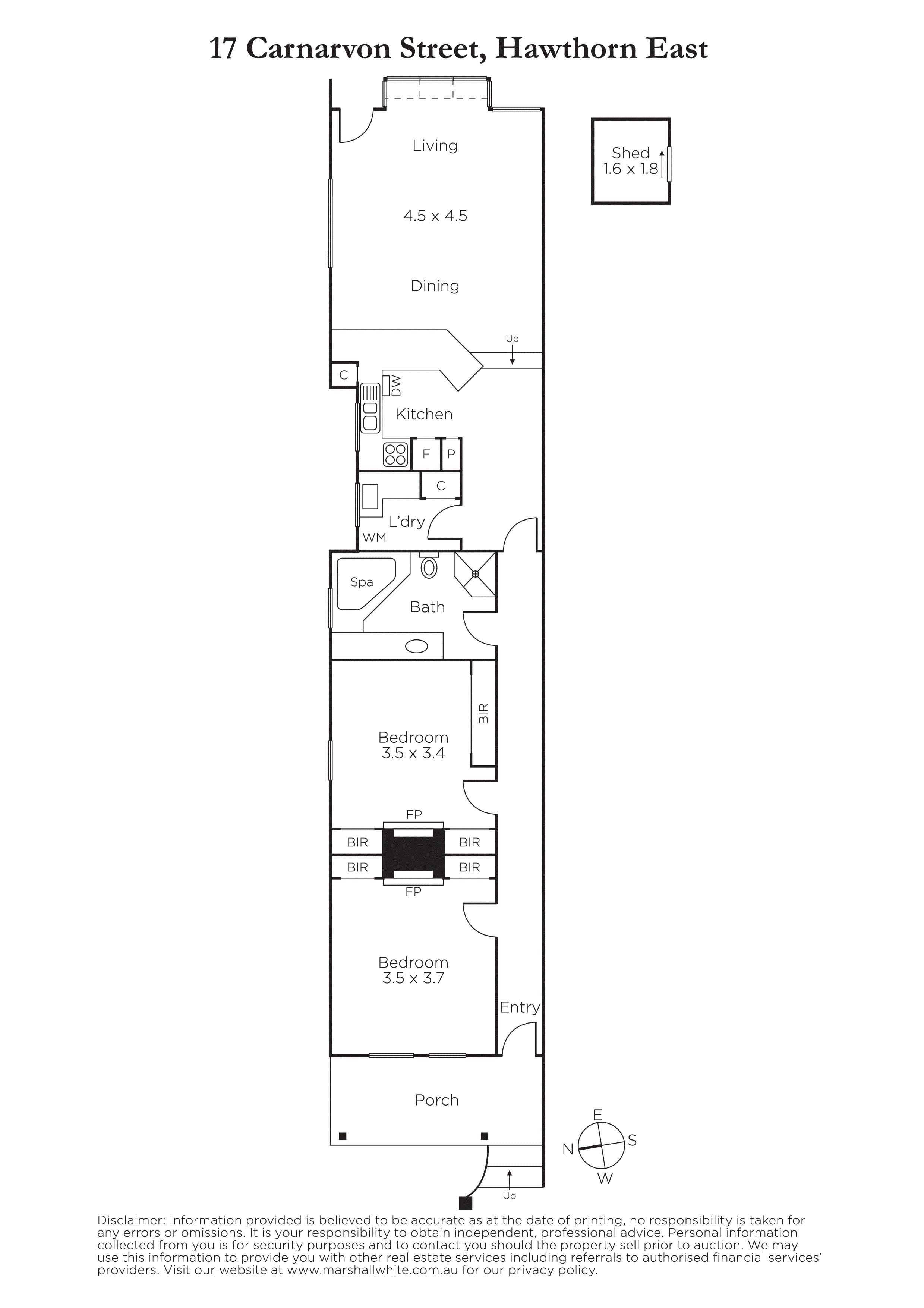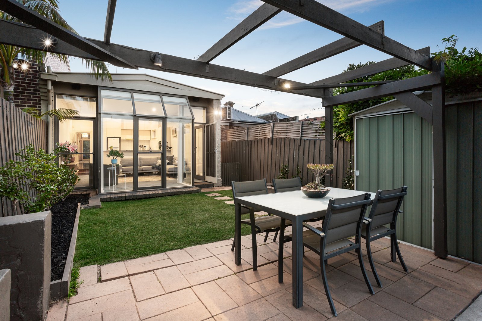 Featuring an inviting interior where stylish renovations have created a light and bright, all white decor enhanced by high ceilings with roses plus northern windows all underpinning its ambience. Polished timber floors flow down a long hallway past two bedrooms, both with carpets, built-in robes and split system air condiitoners plus a sparkling bathroom with spa bath and a separate laundry. Through to a generous living and dining room with a conservatory-style window incorporating a well-appointed kitchen with quality appliances and a granite benchtop. Opening to a sunny courtyard garden with ample space for indoor/outdoor entertaining or off-street parking if preferred. Other features of this home include ducted heating, separate air conditioner in main living area, OFPs, garden shed, freshly landscaped gardens with a watering system and rear lane access.