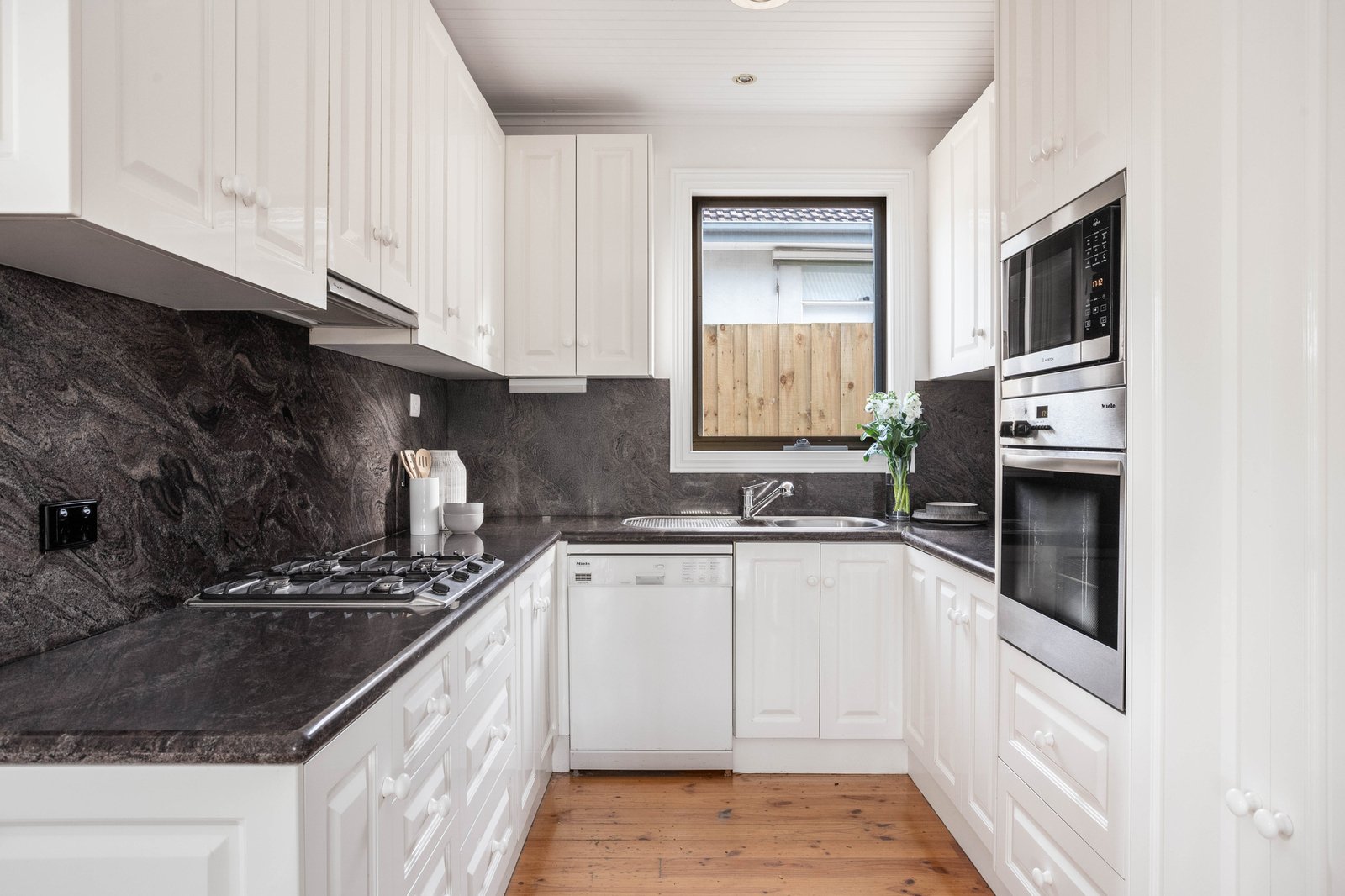 Framed by a broad return verandah, the imposing entrance hall featuring high ceilings, leadlight windows, decorative fretwork and Baltic pine floors flows through to a gracious light-filled sitting room with an open fire. Bathed in northern light, the expansive living/dining room and a gourmet kitchen appointed with granite benches and Miele appliances opens to a large, decked area overlooking the deep private northeast garden offering plenty of room to extend and/or add a pool. The generous main bedroom with built in robe and a stylish en suite is matched by three additional double bedrooms and a spa-bathroom with separate powder-room. Upstairs: A large versatile room ideal as a retreat/rumpus room or 5th bedroom - includes two fitted study nooks.