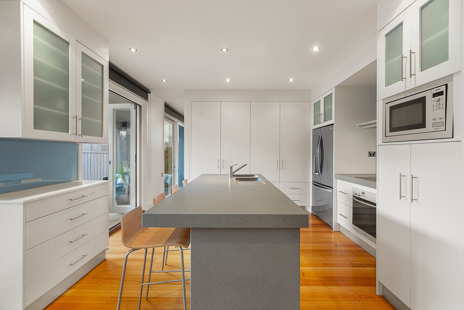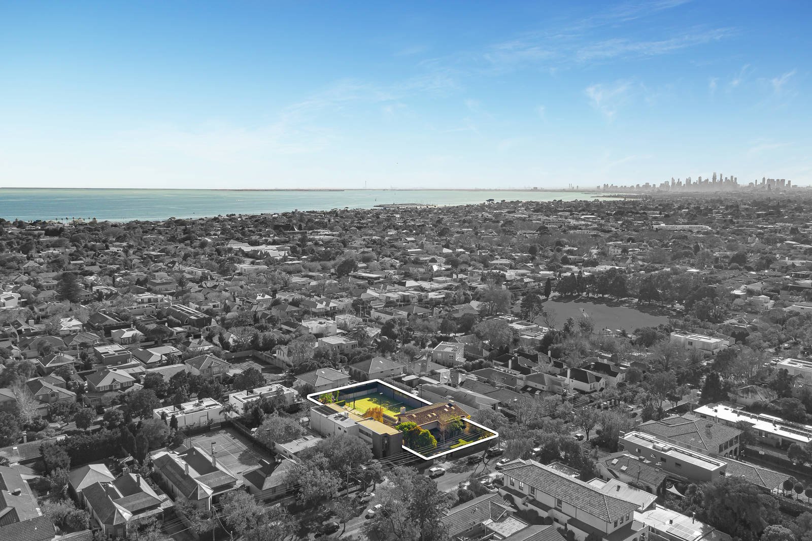 Deluxe five-bedroom home is a superb family hideaway with a tennis court, pool and spa and a first-class location two doors from Hanby Street Reserve. The design is tailormade for exclusive living on 1,290sqm of land approx, with large living zones opening out to the garden and tennis court, a Miele and Bosch kitchen with access to wraparound terraces, ground-floor guest wing, study, and three and half bathrooms. The netted and floodlit tennis court doubles as a big play space, summers are so much better with a tiled pool and spa, and the easy-care landscaping has rain-sensor irrigation. This has every feature you want in a large family home, including a spacious parents' retreat featuring a dressing room, walk-in wardrobe, twin-shower ensuite, and pool and court views. Deluxe interior reveals a glass front door, open fireplaces and trifold doors in the family room, custom-designed cabinetry in the large lounge, timber floors, generous storage, ducted vacuum, and seamless indoor-outdoor living. Come home to video security entry and a remote-control gate with a carport and double garage with generous mezzanine storage. The location is perfect for walking across the road to a playground and parkland, Church Street and Middle Brighton station are close by, Were Street's shops are at the top of the street, and many leading schools are minutes from this impressive home.