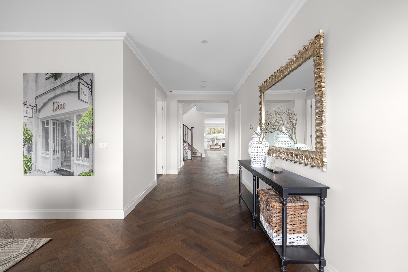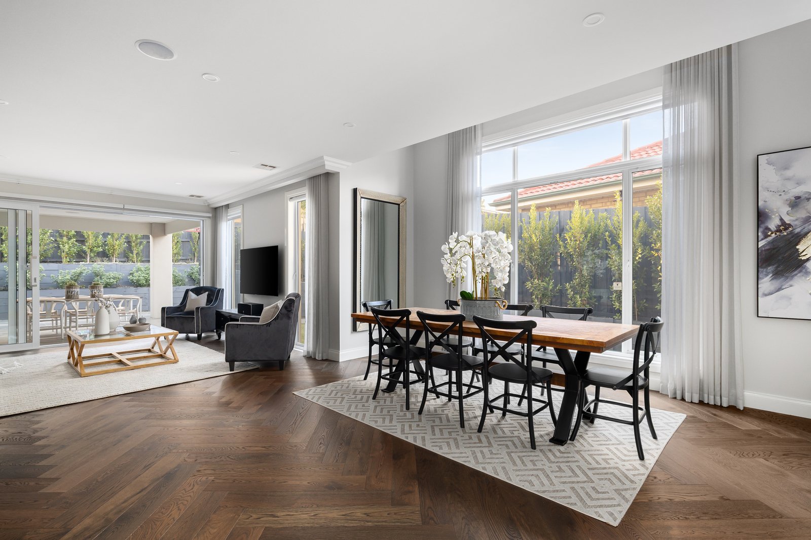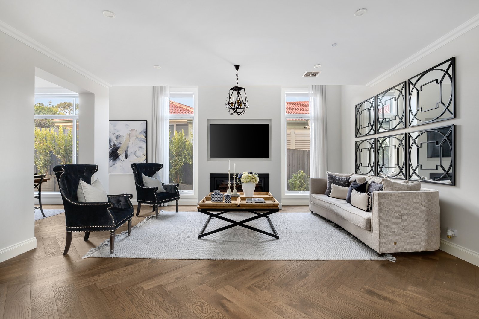 A gracious reception hall featuring high ceilings and rich oak parquetry floors provides a wonderful sense of occasion as it flows through to an executive study and elegant sitting room with a gas log fire. The palatial open plan living and dining room with a sublime gourmet kitchen appointed with stone benches, quality appliances and a full butler’s pantry or 2nd kitchen opening to a large undercover al fresco dining terrace and the private easy-care northwest facing garden surrounds. A fabulous theatre or media room is complete with a projector and screen. On the ground level, a guest or main bedroom with walk in robe and lavish en suite and a downstairs powder-room are matched upstairs by a beautifully proportioned main bedroom with opulent en suite with spa bath and spacious walk-in robe, three additional double bedrooms with walk in robes and stylish en suites and a generous retreat.