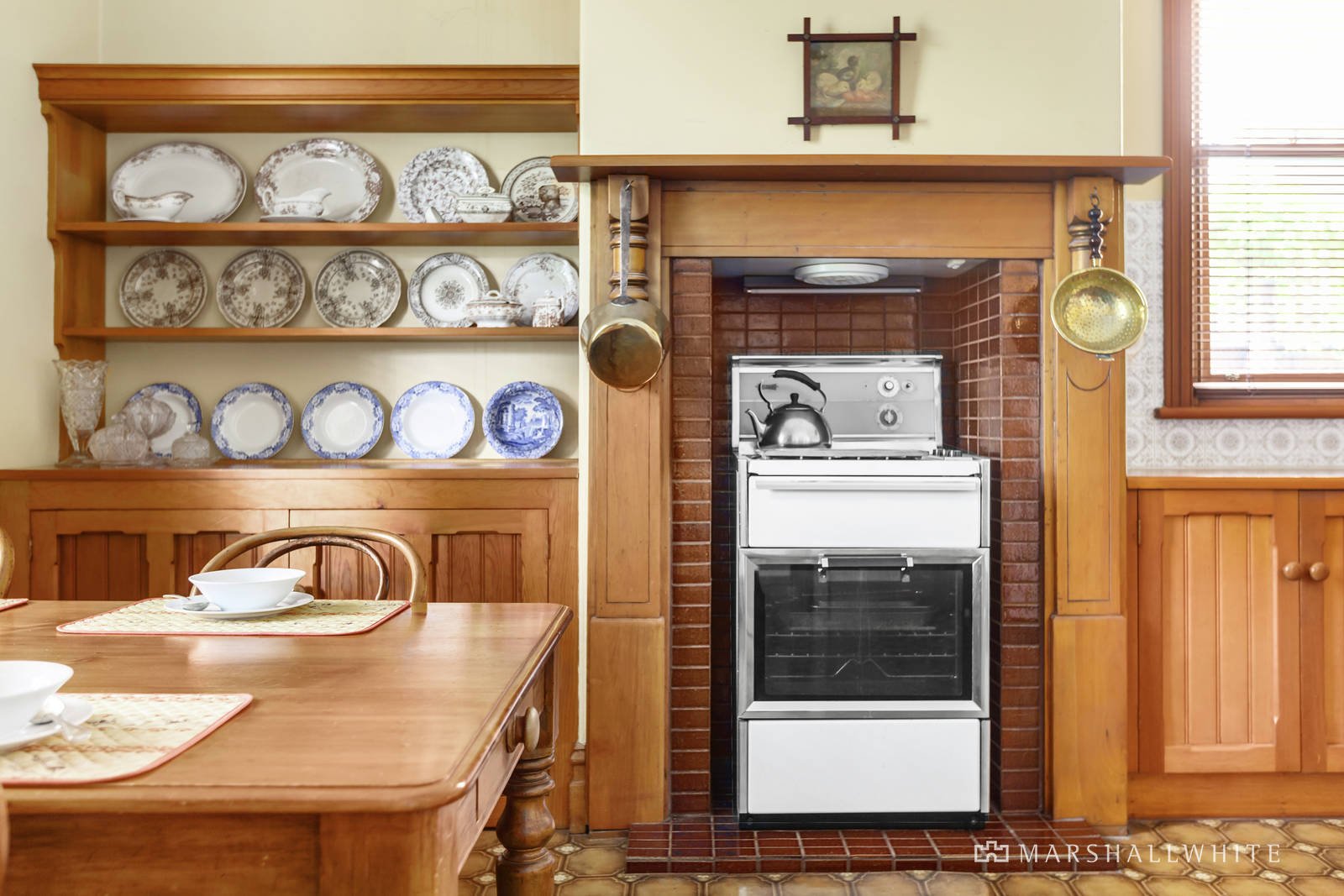 On the market for the first time in 65 years, this cherished home displays rich period elegance and impressive proportions throughout. The arched central hall introduces a gracious sitting room with ornate fireplace, three beautiful bedrooms with fireplaces, and a bathroom. The capable kitchen with casual dining area and the generous living and dining room with a marble fireplace opens to the deep private and leafy, established northeast garden with double carport accessed from a private laneway.