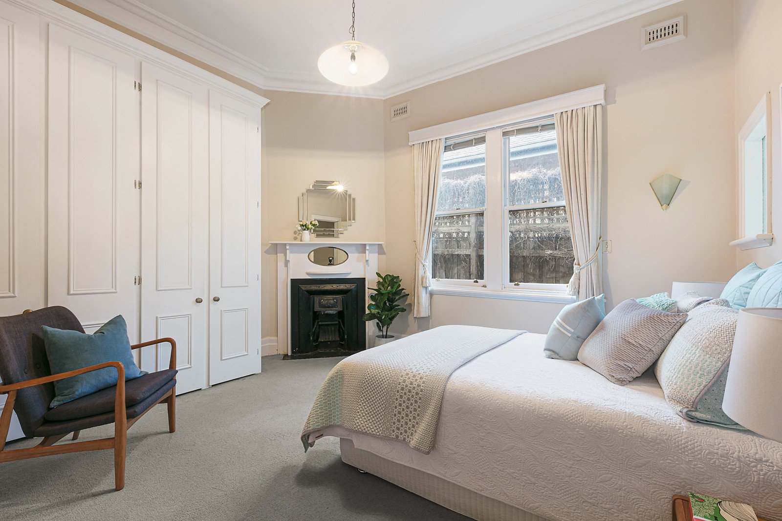 Distinguished by lead light windows and high ceilings, the home features a large formal sitting room with open fire, spacious master bedroom with built in robes & open fire, 2 additional bedrooms with built in robes and a large bathroom and laundry. Natural light streams through the family room and kitchen with dining area leading out to a covered deck with Wisteria entwined pergola overlooking the deep private garden with garage accessed via a wide rear lane.