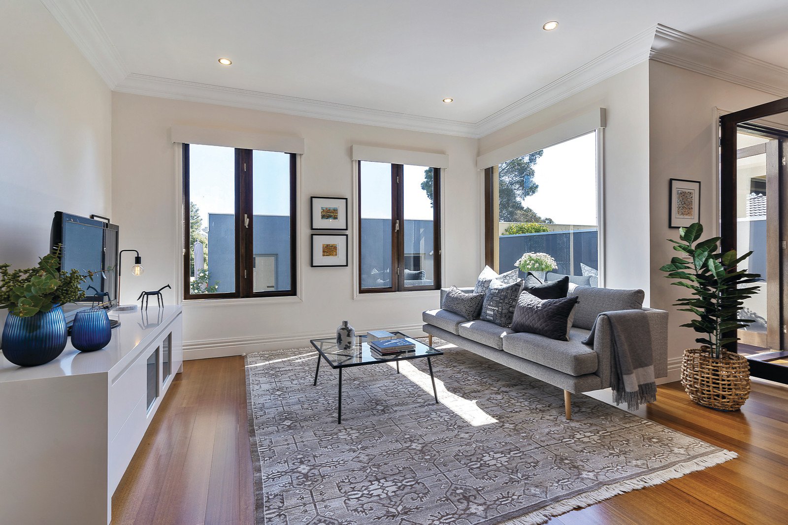 This architect designed contemporary two-storey family residence boasts a rendered façade complemented by a deceptively spacious, luxuriously appointed interior which exudes style and maximizes light from full-height windows.