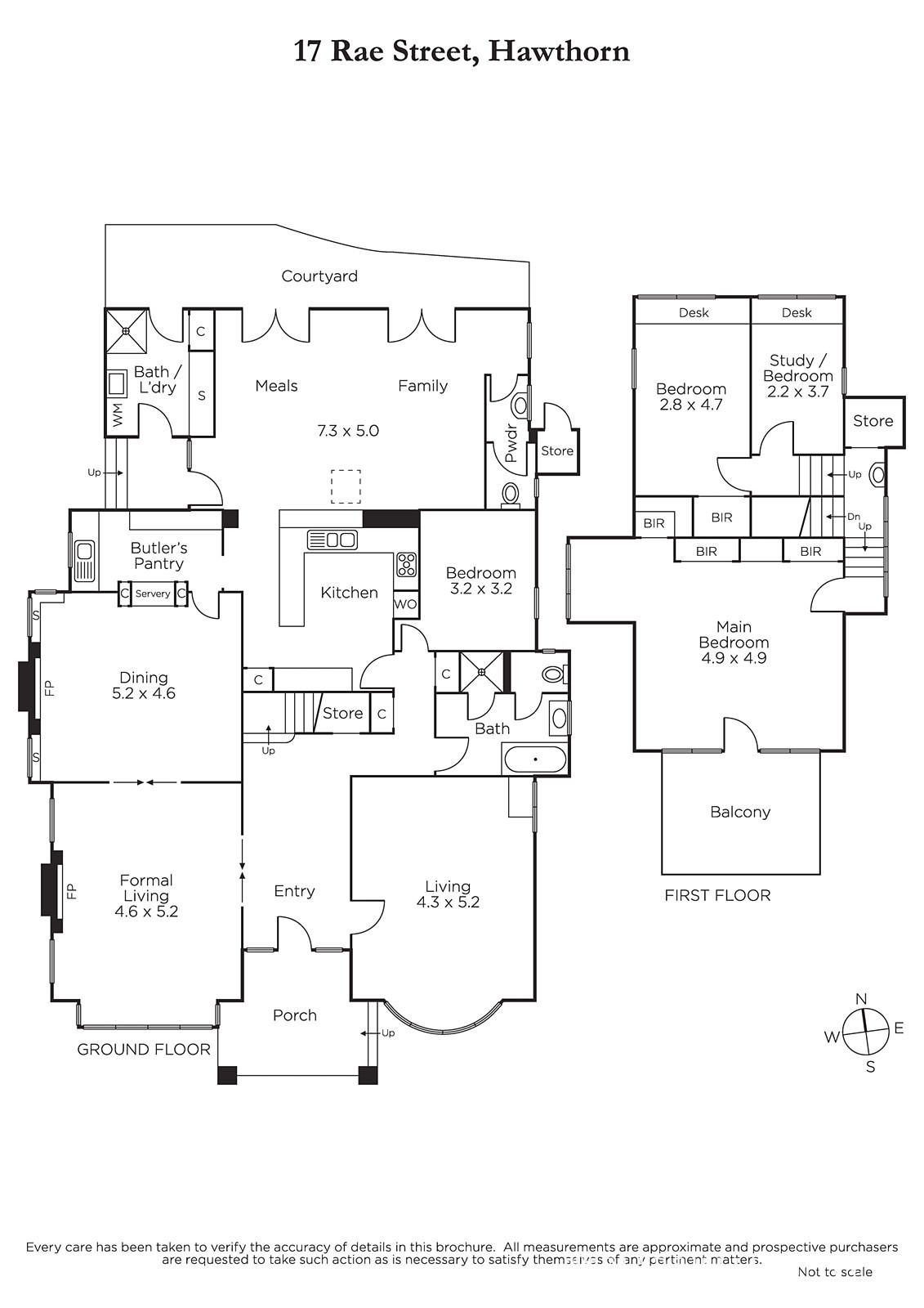 Set on a mature garden allotment enhanced by a preferred northern rear aspect the home showcases some classic period attributes including leadlight glass, bay windows, high ceilings and spacious proportions typical of its era. A wide hallway leads to a formal sitting room and adjoining dining room, a study, downstairs bedroom, and period-style family bathroom. Plus, a central modern timber kitchen equipped with granite benchtops, premium appliances and adjacent butler's pantry; overlooking a generous family living and dining room with adjacent powder room, external bathroom/laundry and a deep rear garden. Three further bedrooms are located upstairs, including a large main with built-in robes opening to a front balcony with City skyline views. Other features include ducted heating, OFPs, upstairs air conditioners, ample storage including roof, a carport and tandem off-street parking.