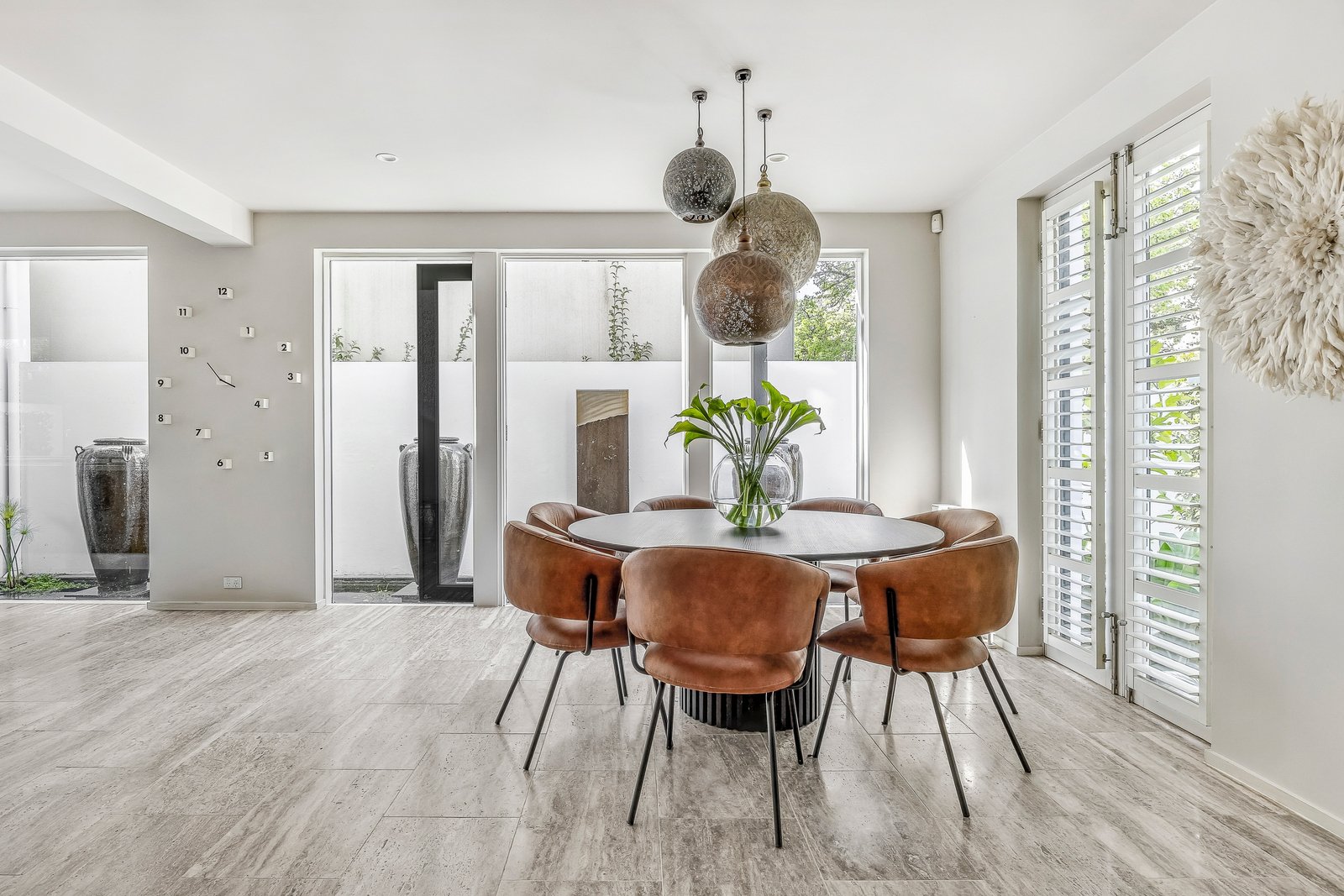Behind a high walled landscaped garden, the interior spaces exude contemporary refinement with the high ceilings and honed Travertine floors. A stunning north-facing courtyard garden with pond and water features provides a beautiful backdrop to the generous dining area and sleek gourmet kitchen appointed with stainless steel benches, a 90cm Belling oven, Miele dishwasher and integrated Liebherr fridge/freezer. An elevated ceiling accentuates the sense of space in the expansive living room with a roaring open fire. Two sets of double doors extend the living area out to a breathtaking west facing garden oasis and a picturesque, heated pool with a series of waterfalls.